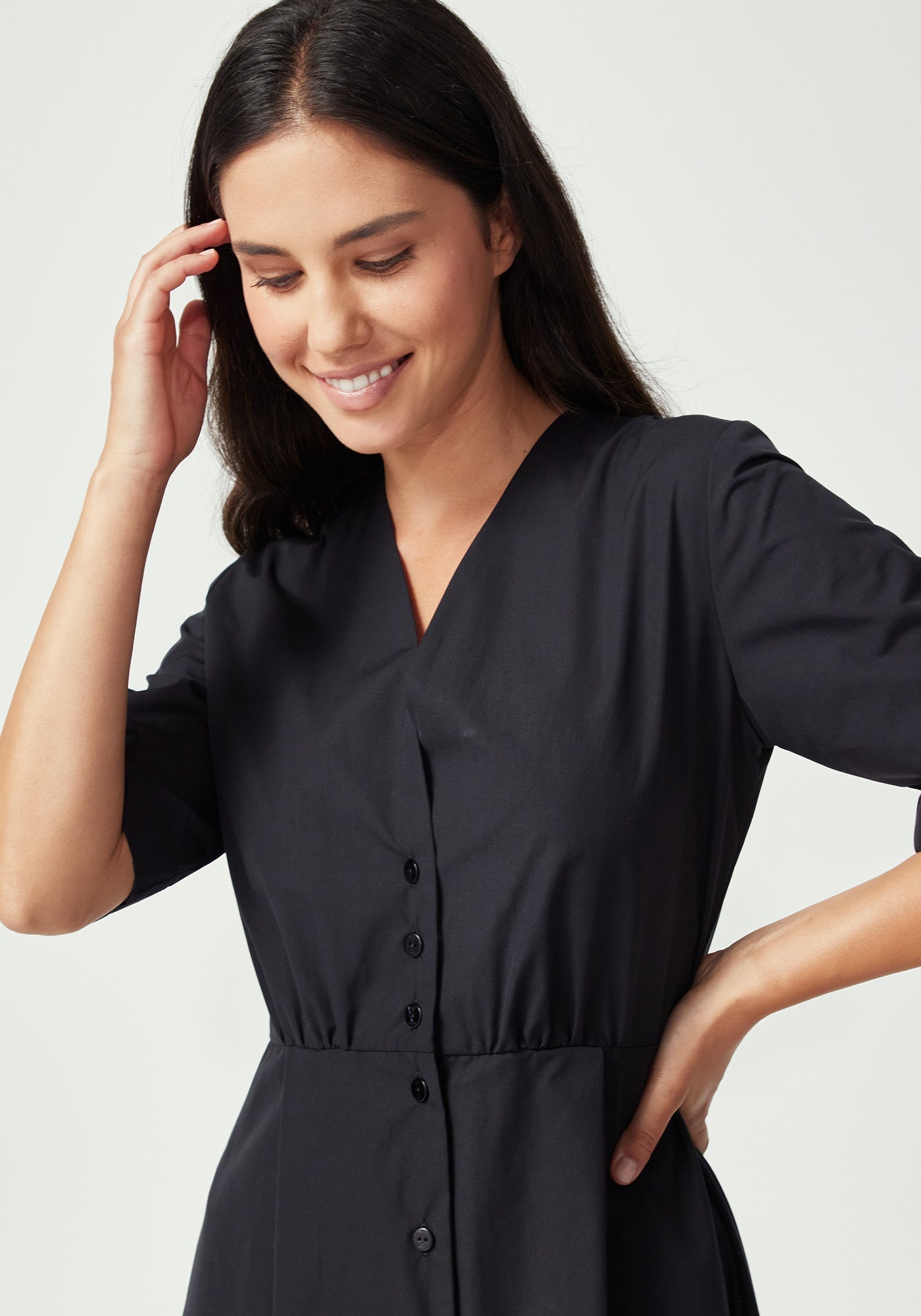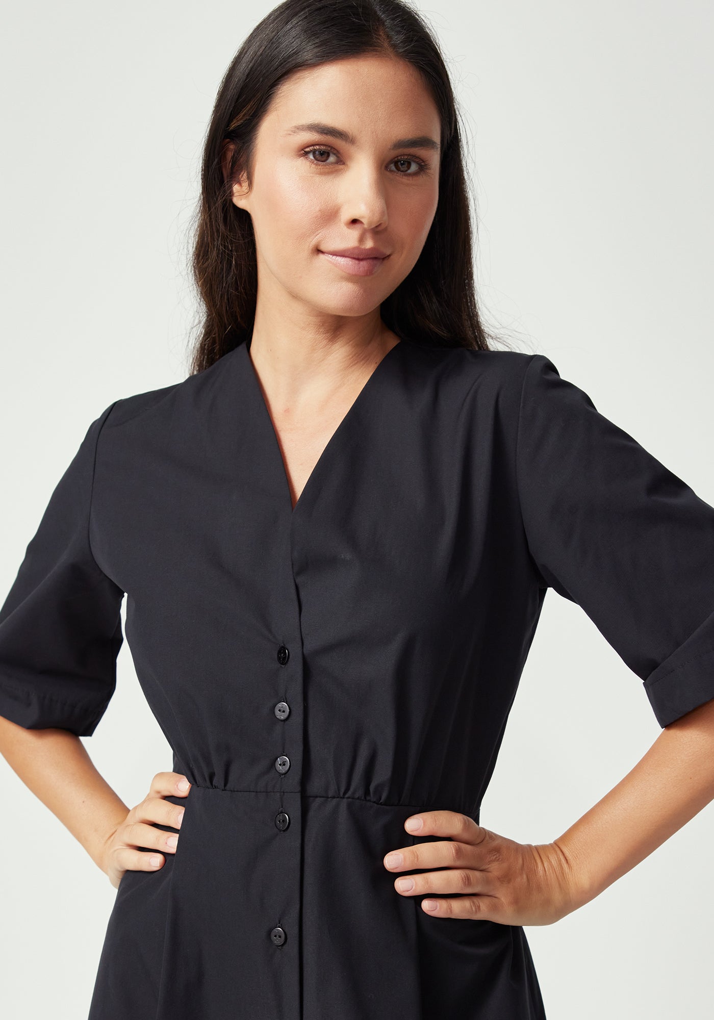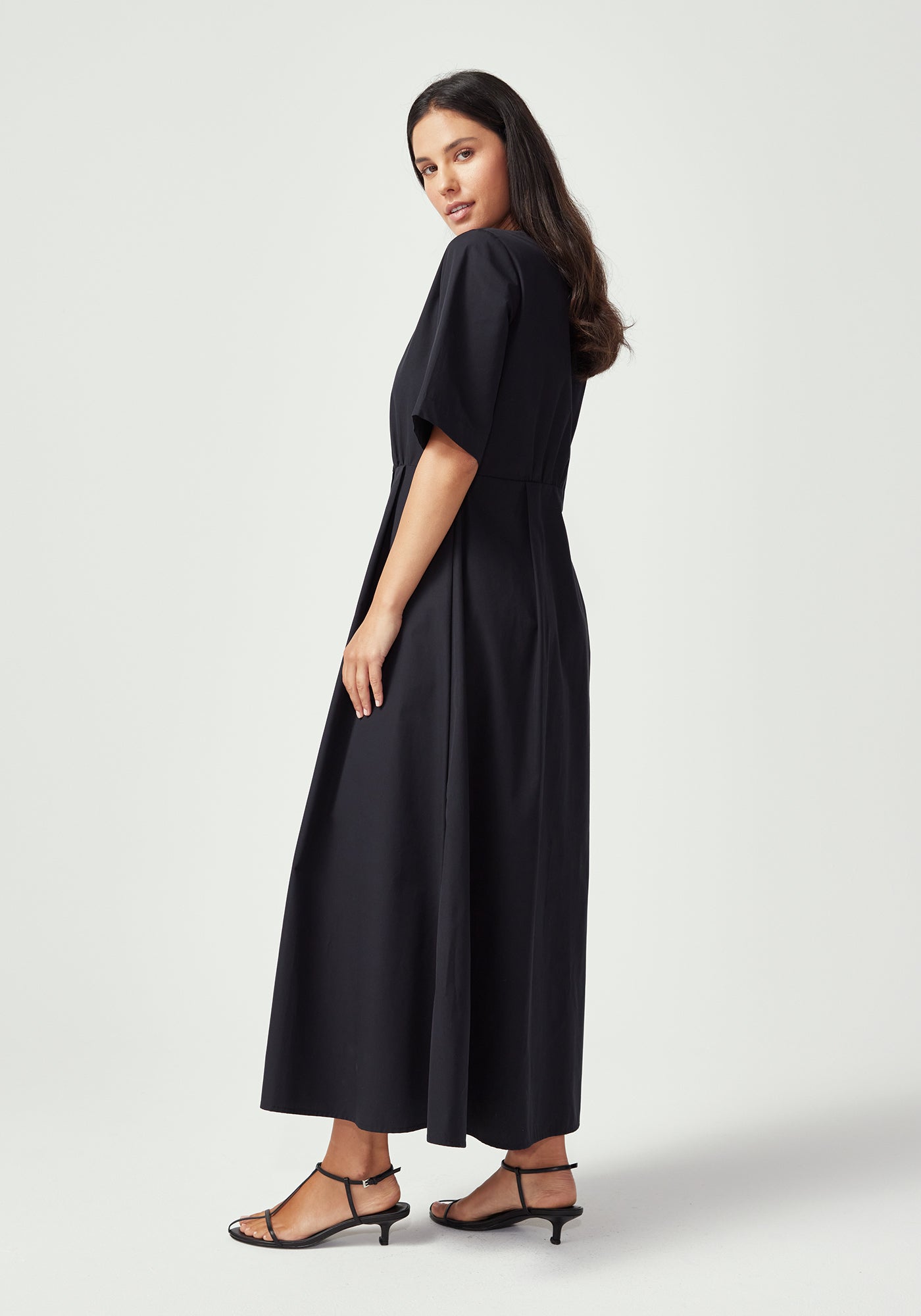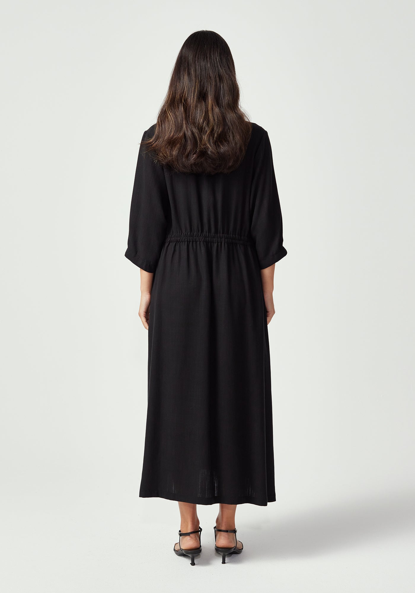 The fabric is exquisitely fine and soft with just enough stretch to make it so easy to get on and off. Drapey and also clingy in the most beautiful ways to make the fit flattering. Elegant and beautifully made. Light as a feather, cross-season garment.