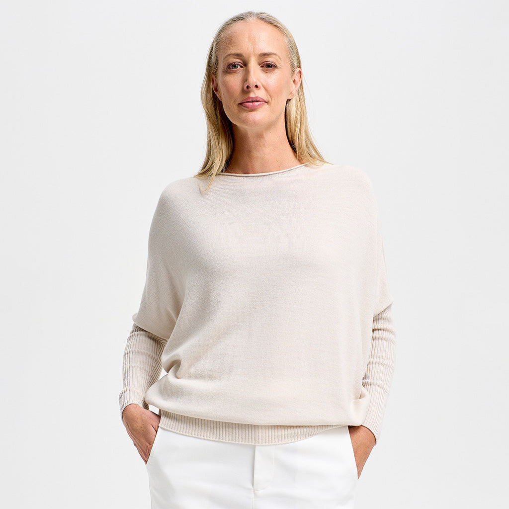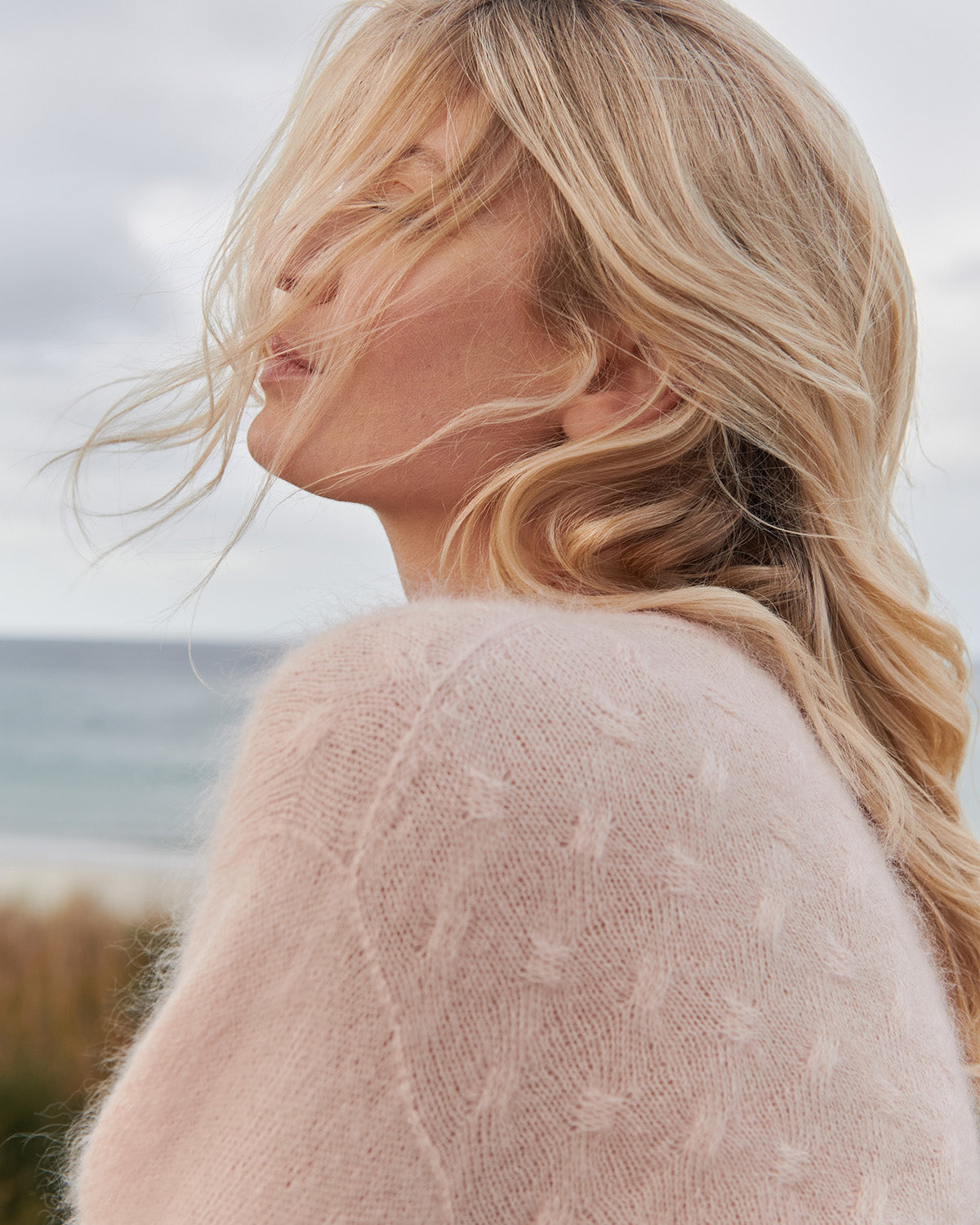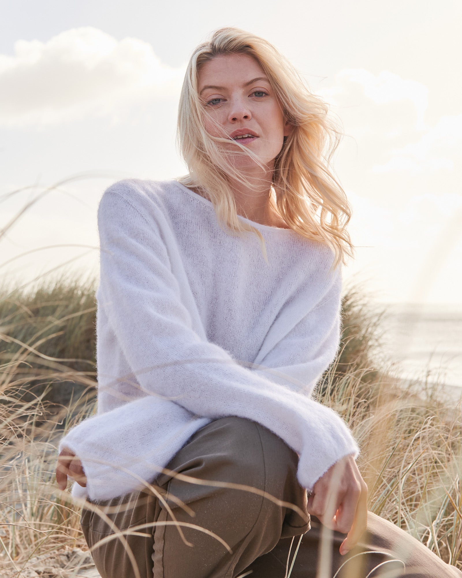 Soft light but warm perfect between season. Colour pretty, feminine design, style loose but not baggy, just a pretty delicate sweater that I really love.