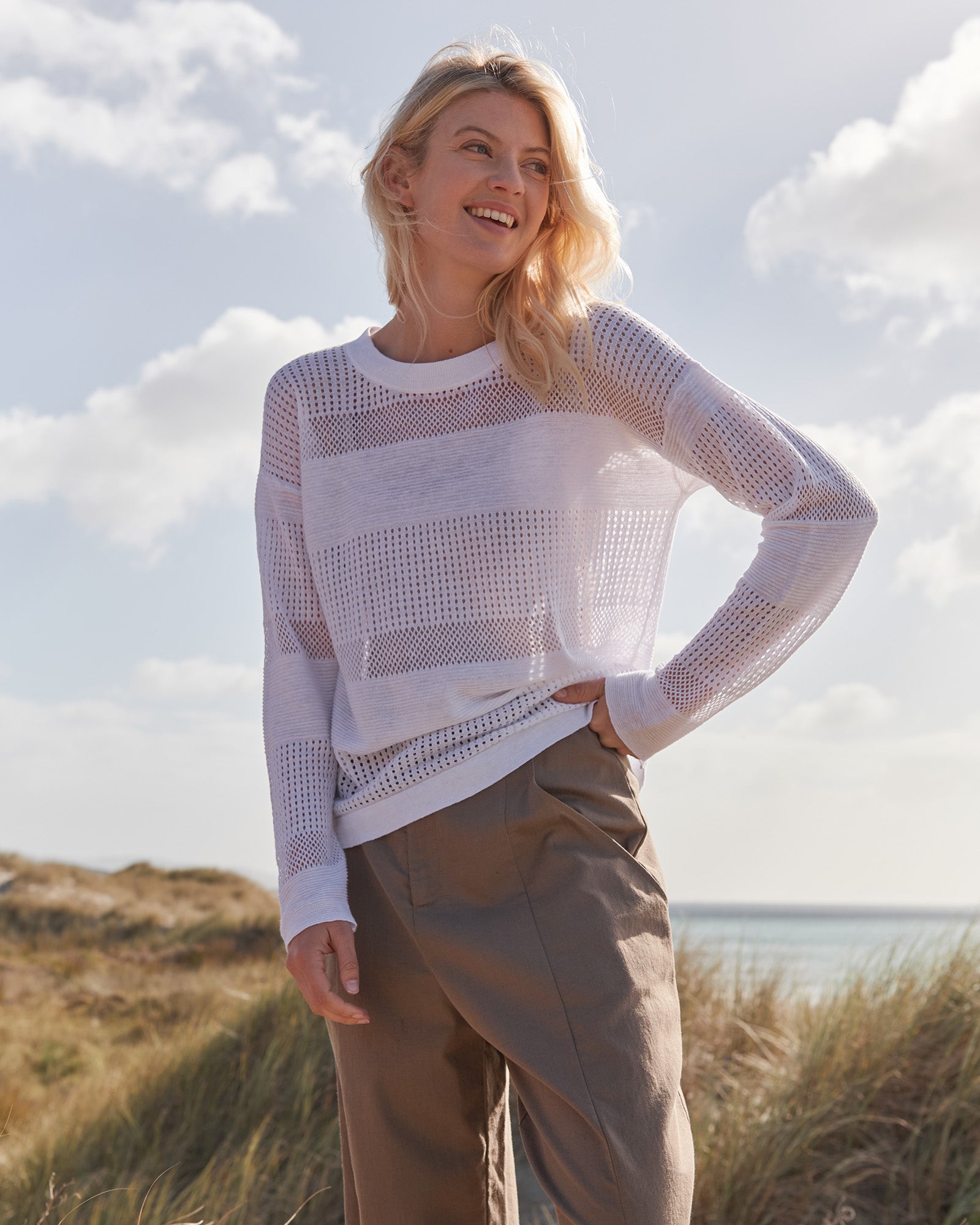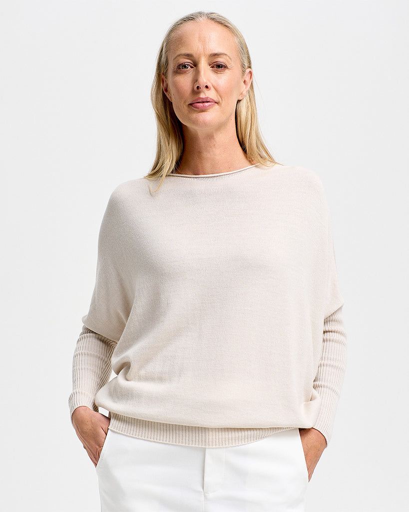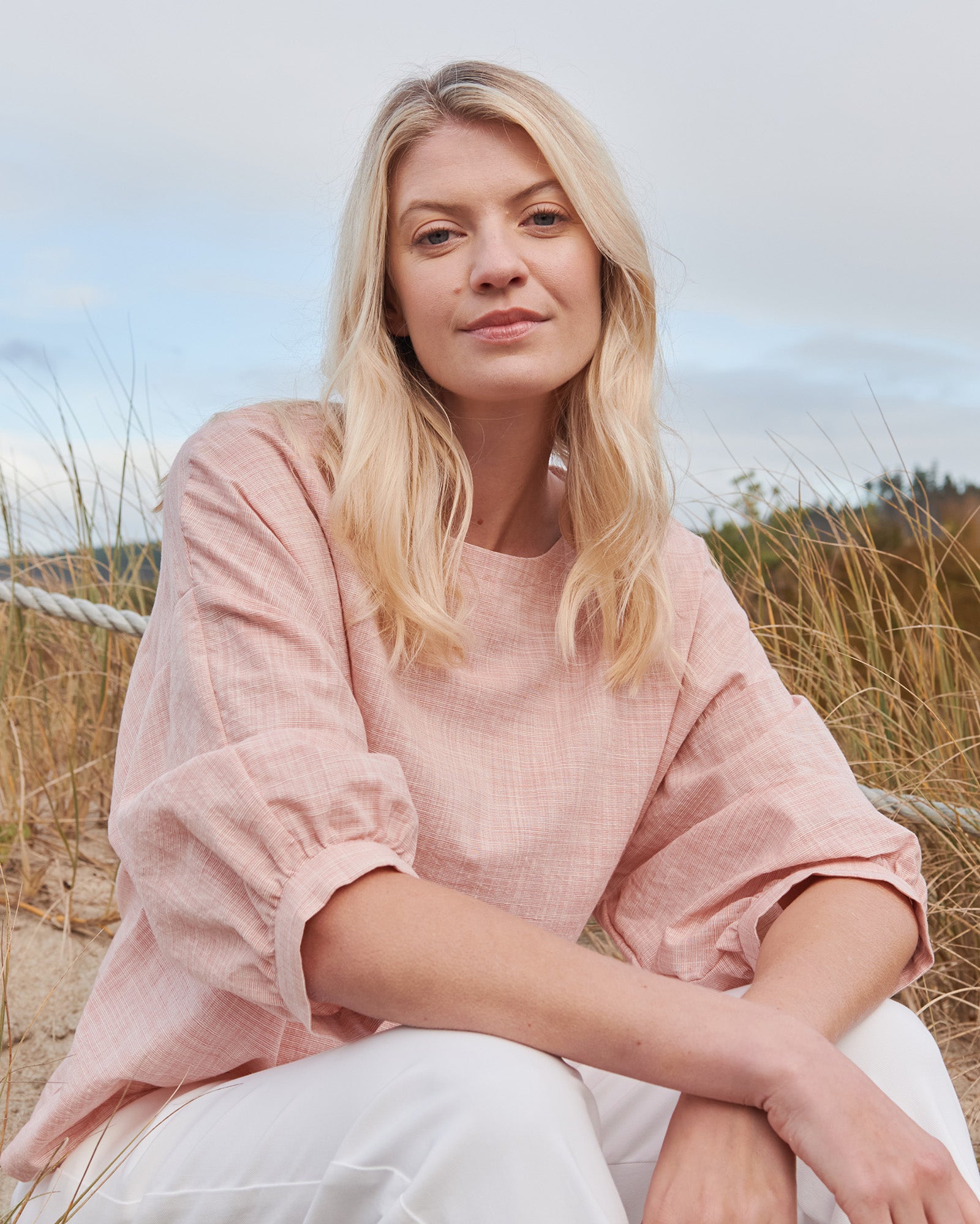 Soft light but warm perfect between season. Colour pretty, feminine design, style loose but not baggy, just a pretty delicate sweater that I really love.