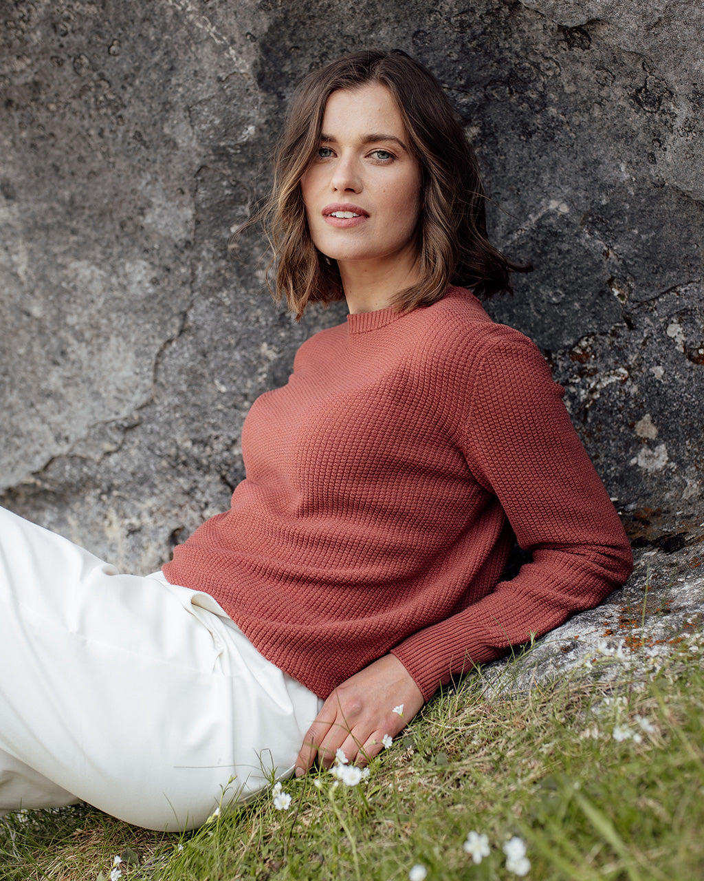 I love this sweater. It is so easy to care for and it looks very stylish. There is a great range of colours and the textured knit is a great feature.