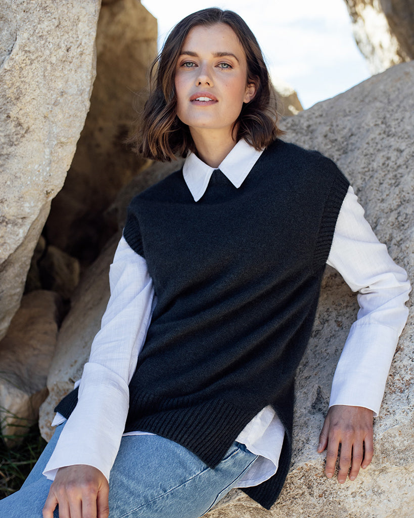 Love this soft warm beautiful quality vest. Very versatile piece to dress up or down.