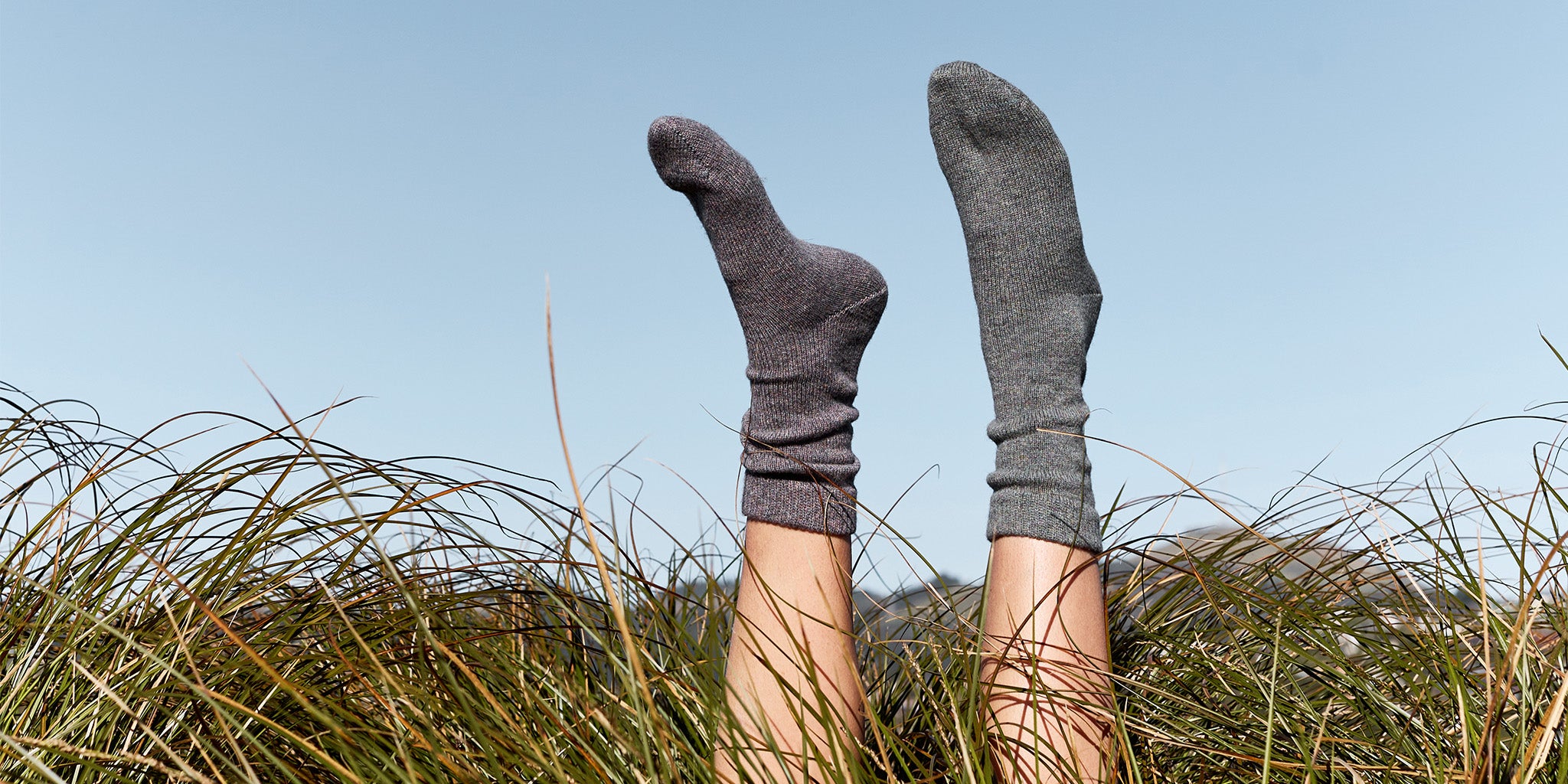 Our one-of-a-kind Waste Socks, made from our exclusive blend of raw merino fibre and natural recycled materials.