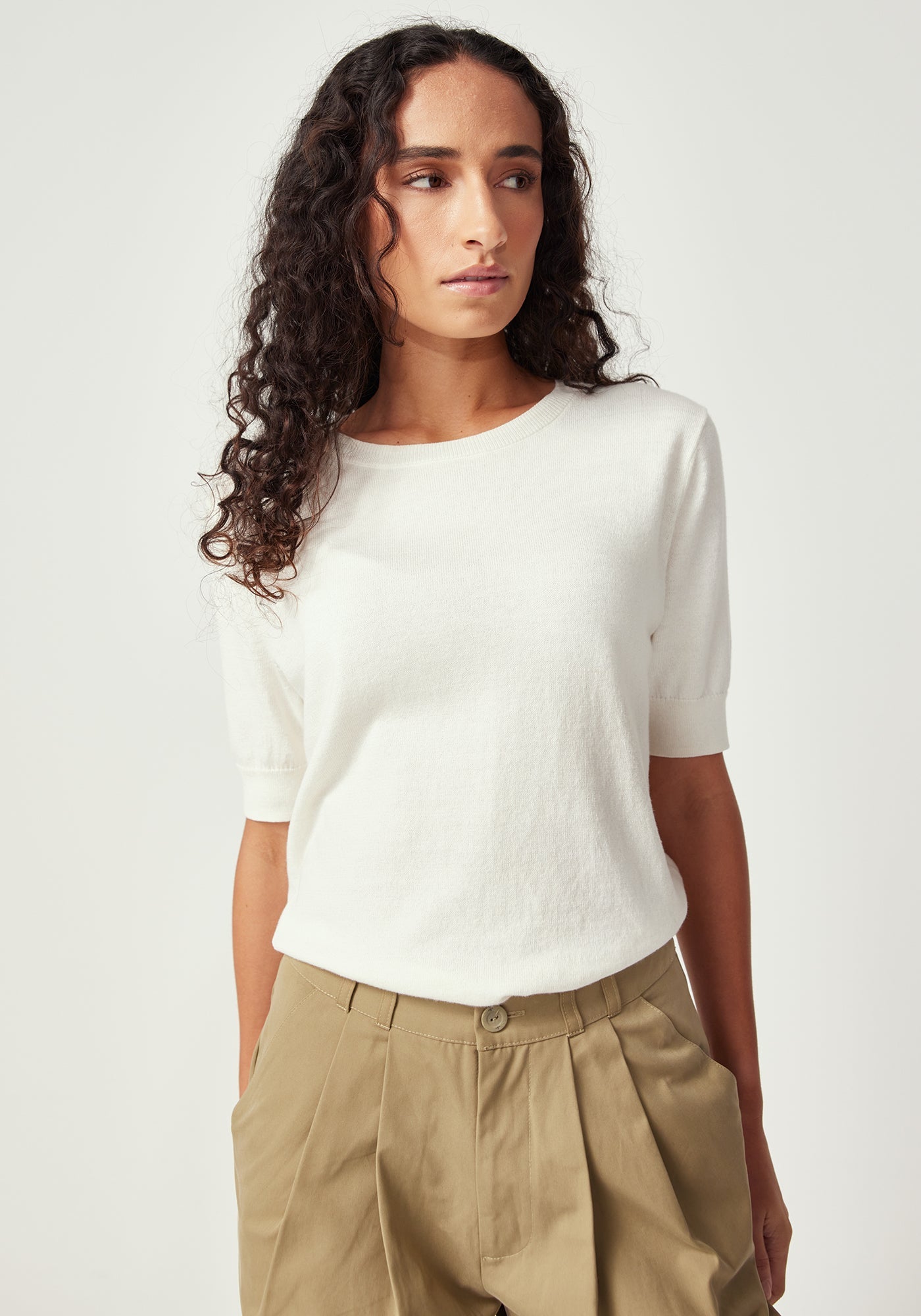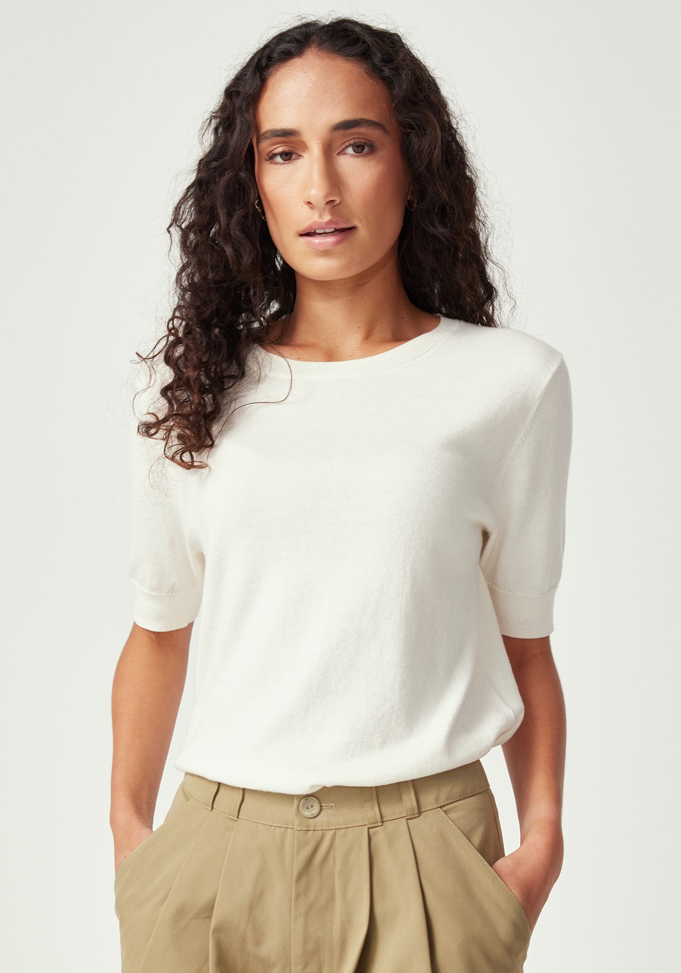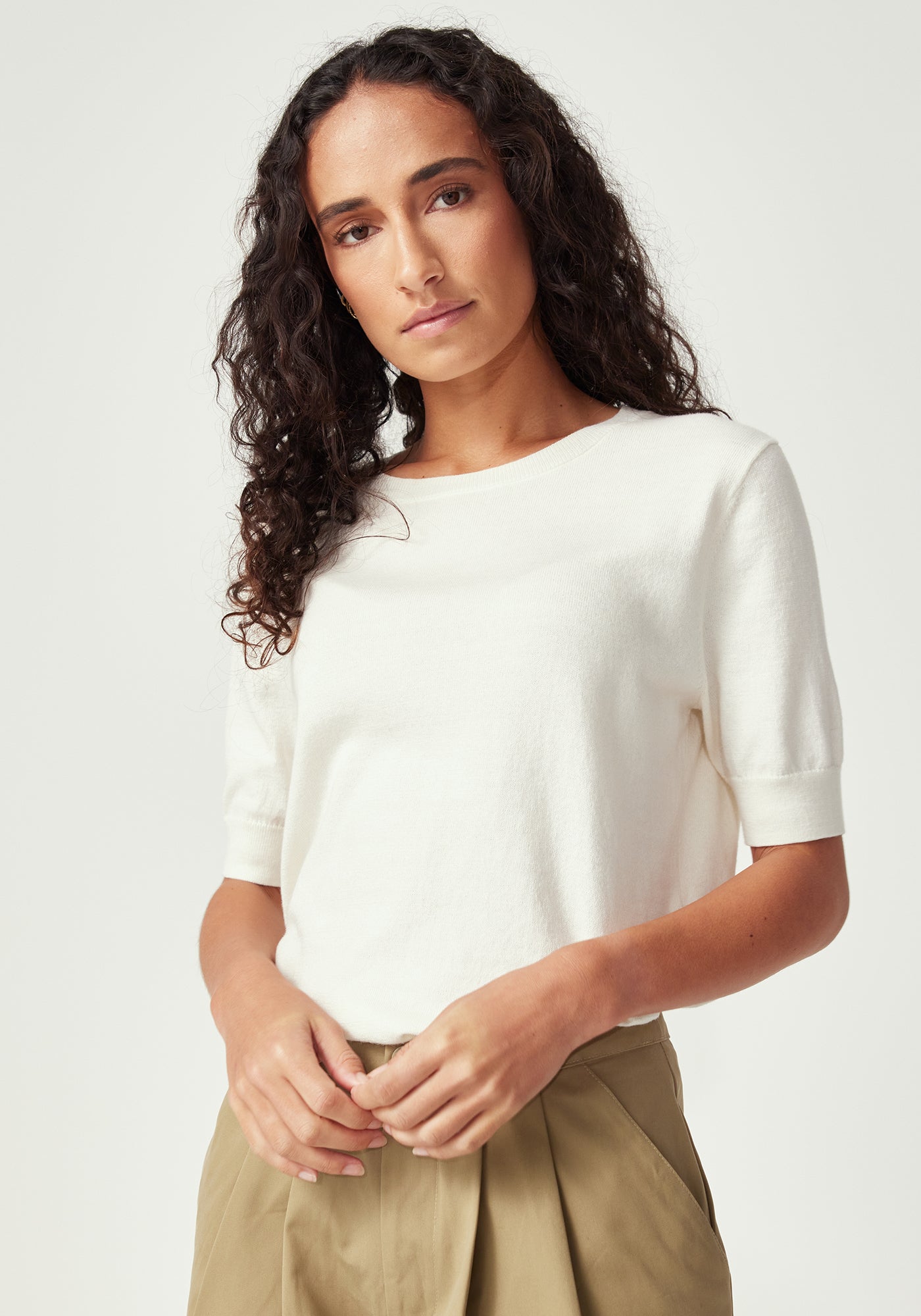 Meet your new wardrobe hero - a perfectly proportioned tee that strikes the ideal balance between relaxed comfort and refined style. The Maelyn features a classic crew neckline and flattering elbow-length sleeves that hit at just the right spot to elongate your arms while providing comfortable coverage. Whether tucked into high-waisted denim or worn loose over tailored trousers, this tee effortlessly elevates your everyday look.