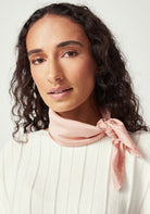 The Triangle Scarf is your secret weapon for effortless styling versatility. This perfectly proportioned 63cm x 63cm scarf can be worn countless ways - tied at the neck for classic sophistication, as a headscarf, headband or draped over shoulders as a light wrap. Available in soft Bloom pink and serene Casper blue, this accessory brings a pop of colour and refined polish to both casual and formal looks.