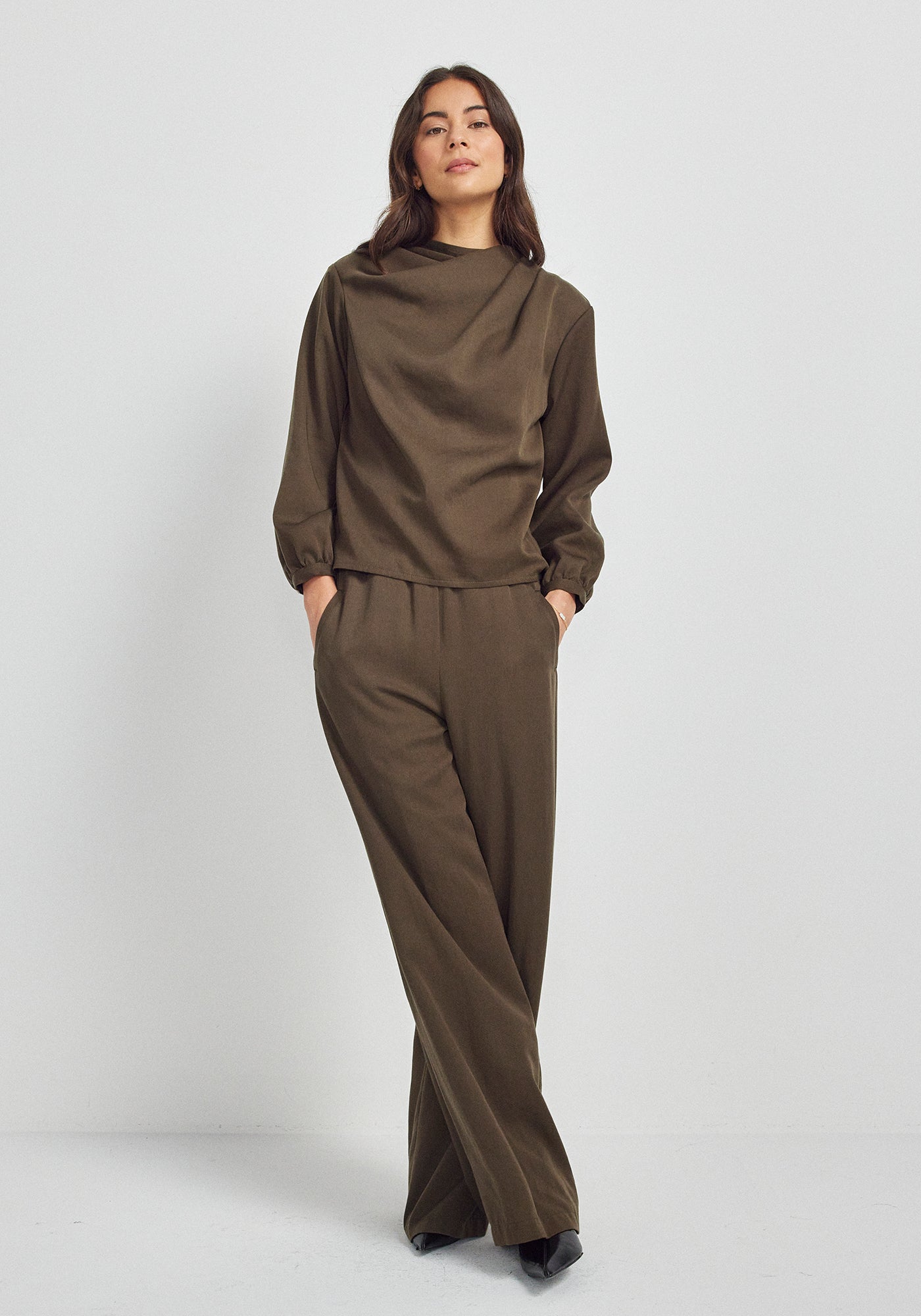 Textures lead the way, visible and honest. Just like the forest floor, rich underfoot, layered with time. Silhouettes wrap, encase, cocoon. A sanctuary spun from nature’s enduring hand, reminding us that true luxury lies not in excess, but the embrace of simplicity.