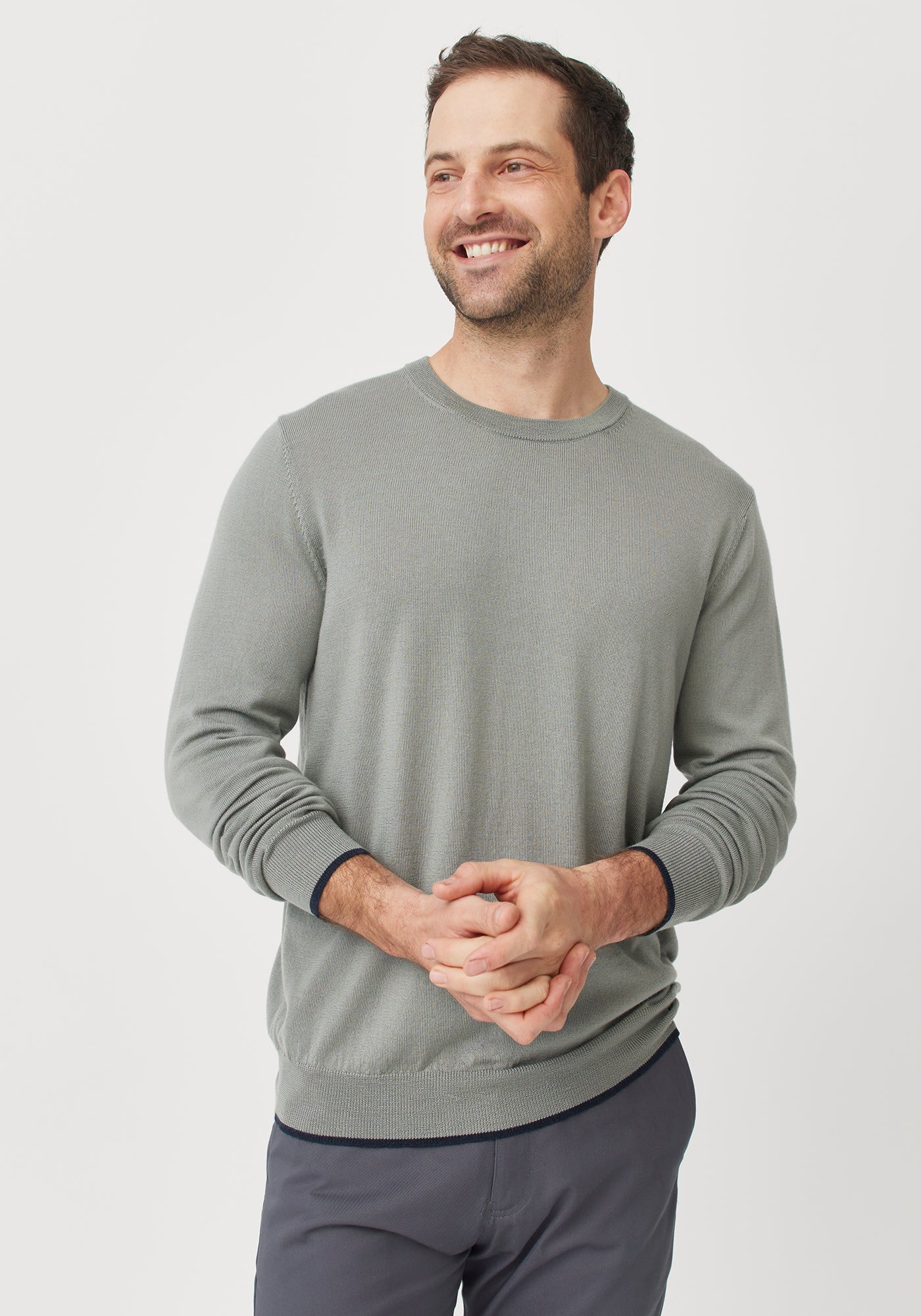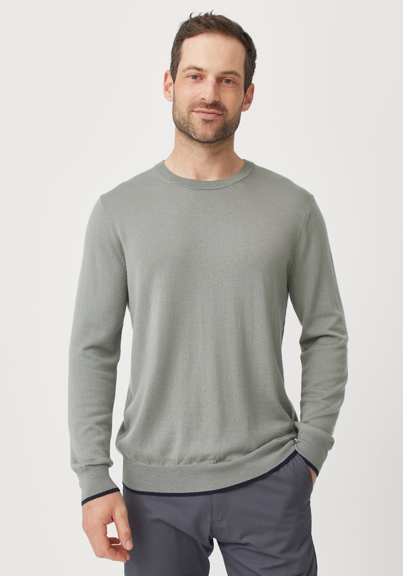 The Aden Crew is a classic with a twist. Contrast tipping on the waist and cuffs adds detail and interest to this simple silhouette.