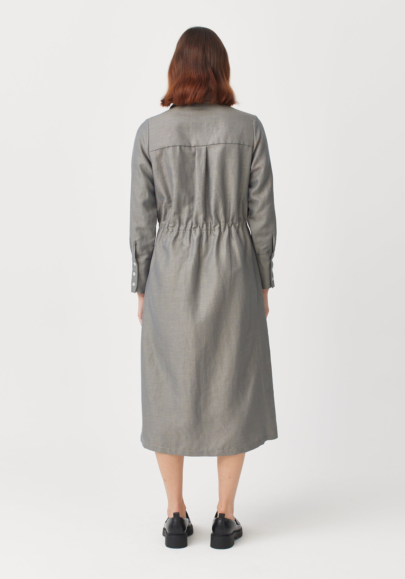 Make your mark in the Macy. This versatile shirt dress can be worn buttoned up, or style it open as a lightweight outer layer. Use the self-fabric belt to cinch it in, or wear it more relaxed. A collar, covered placket and deep cuff with three buttons, give this piece a smart look.