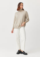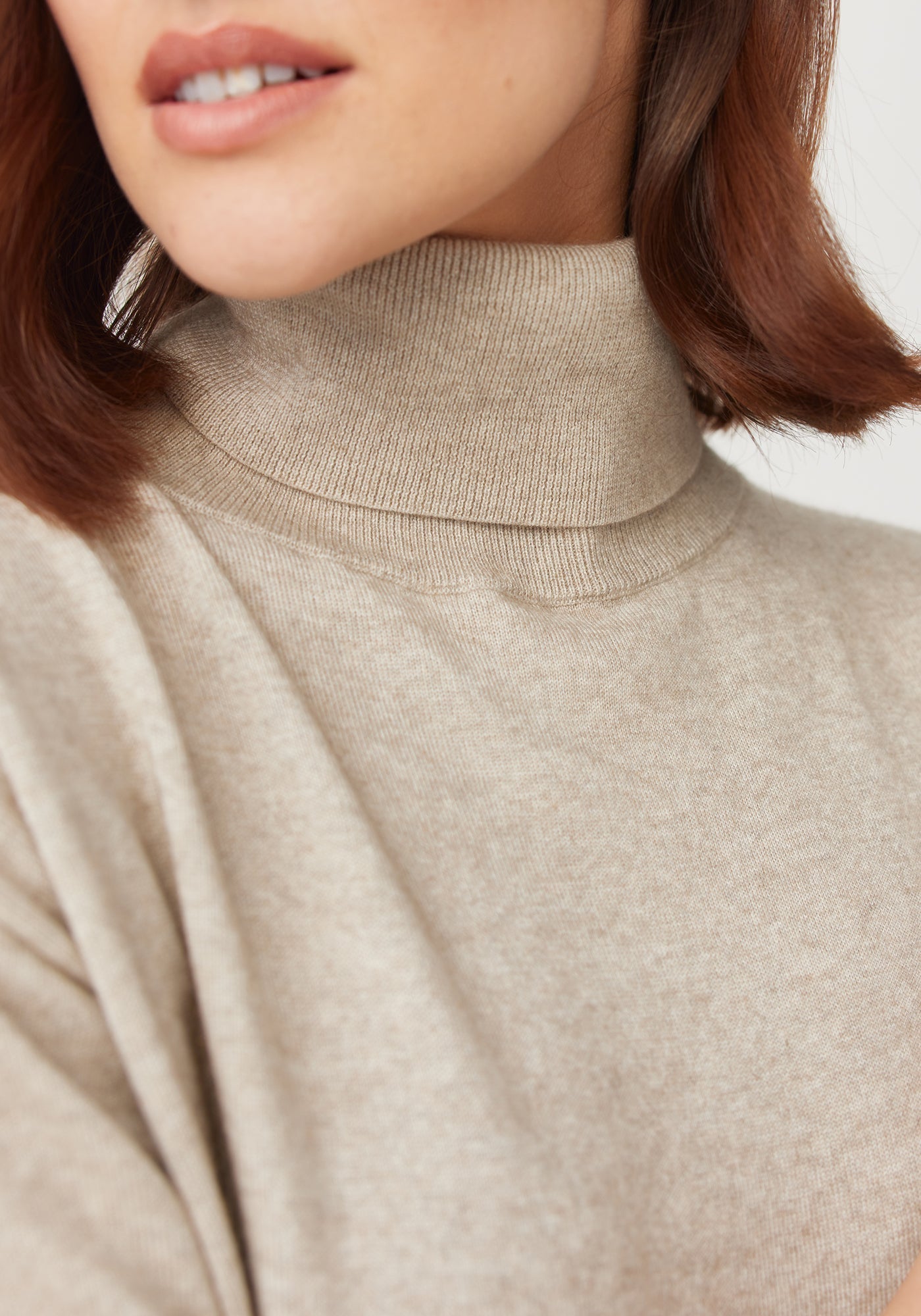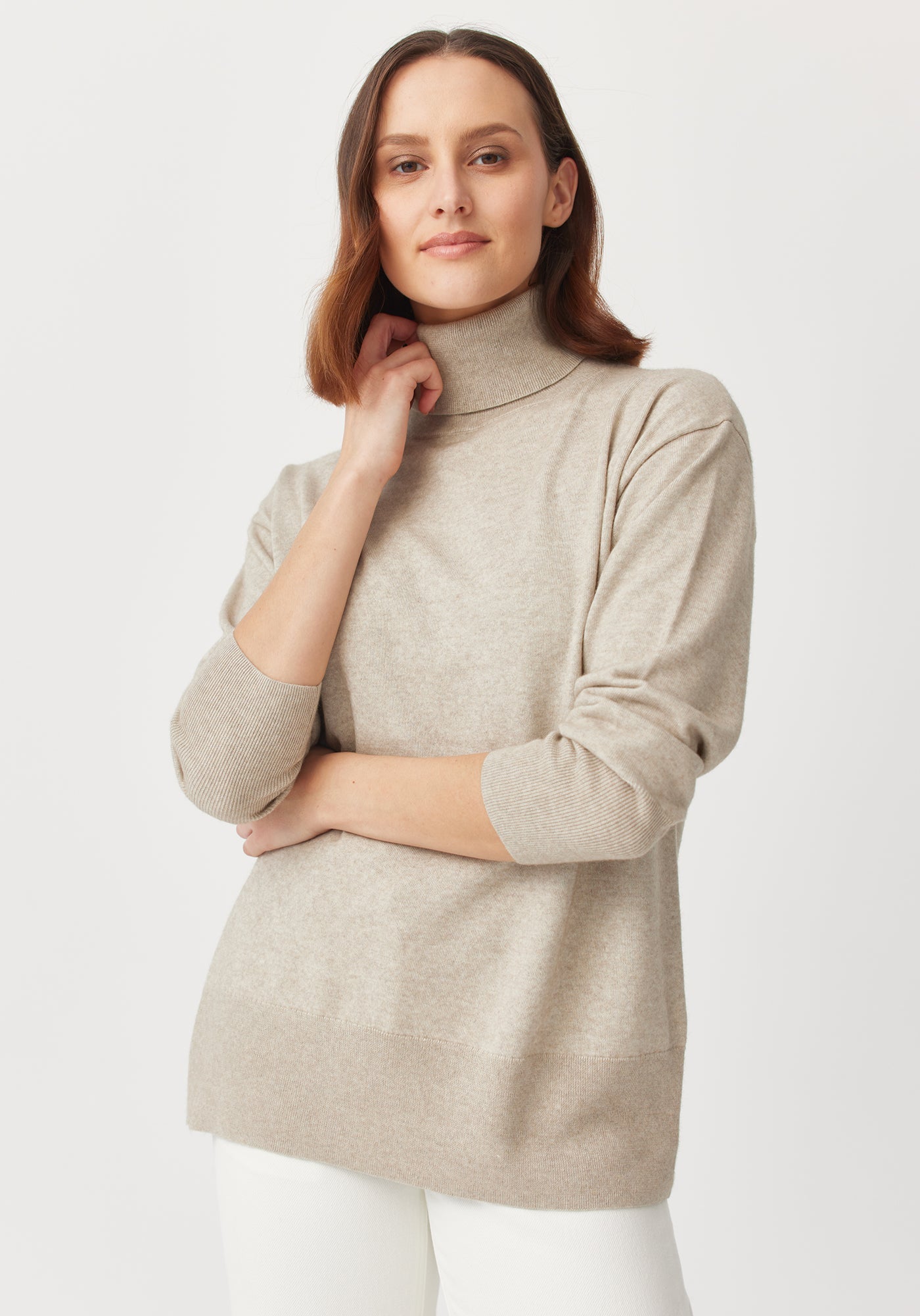 'Mae'd' from our luxe blend of TENCEL™, merino and ultrafine possum, the Mae Turtleneck is relaxed in silhouette for that effortlessly loungy look. Please note, if you're wearing our Pumice Ecotree with dark colours you may notice some initial shedding. As it's a natural fibre, this is to be expected and will improve with wear.