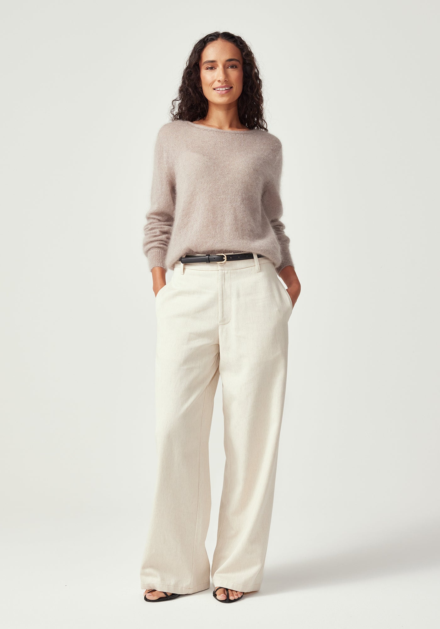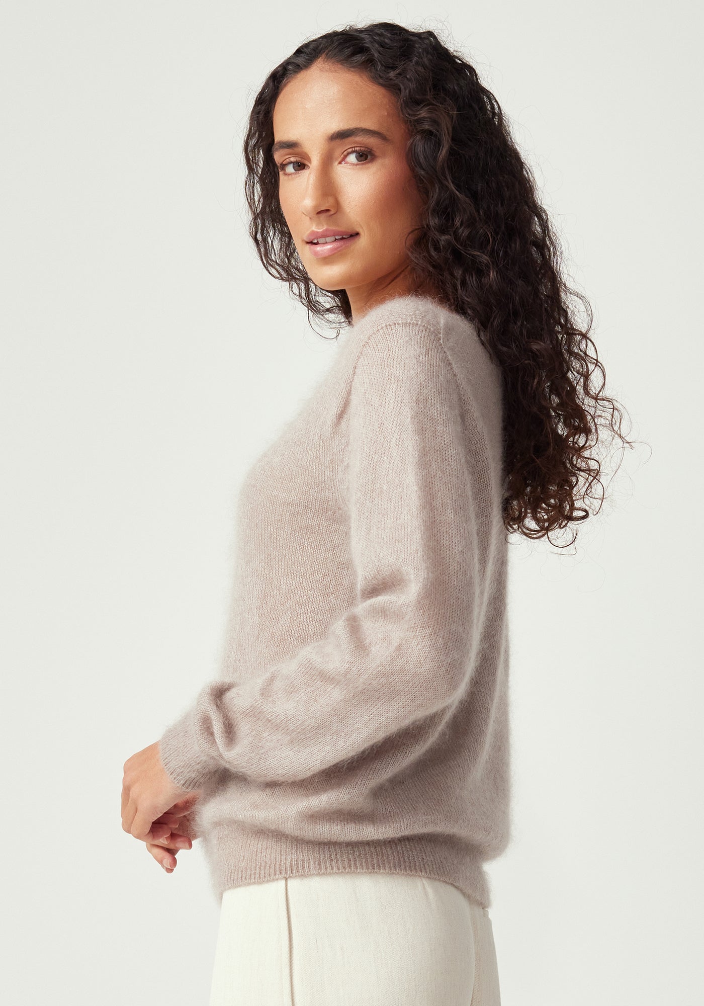Indulge in luxurious comfort with this exquisitely crafted sweater made from a sumptuous blend of 70% Super Kid Mohair and 30% silk. The crew neck design offers an incredibly soft, cloud-like feel with a subtle lustrous finish. Perfect for both casual occasions and elevated everyday wear.