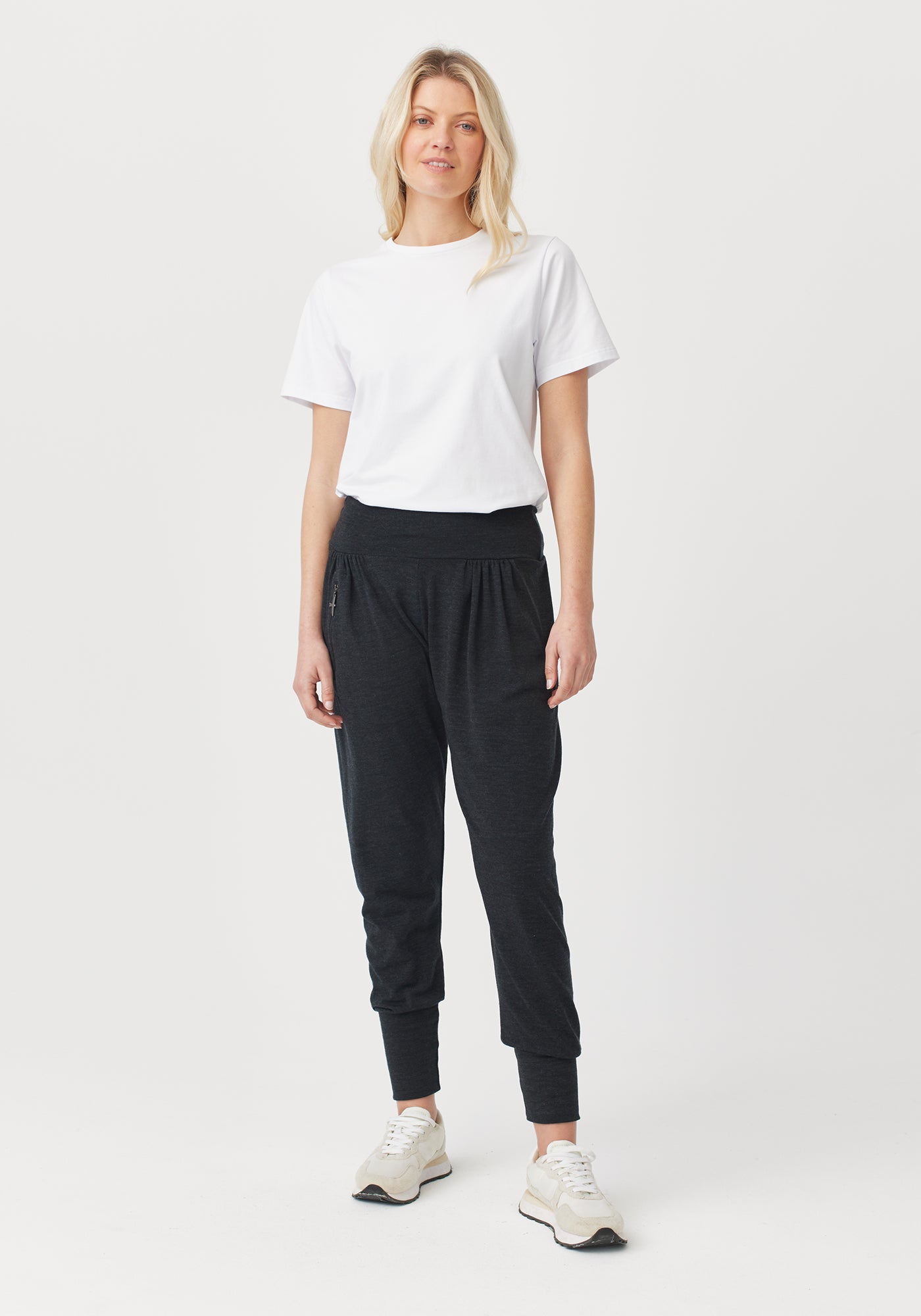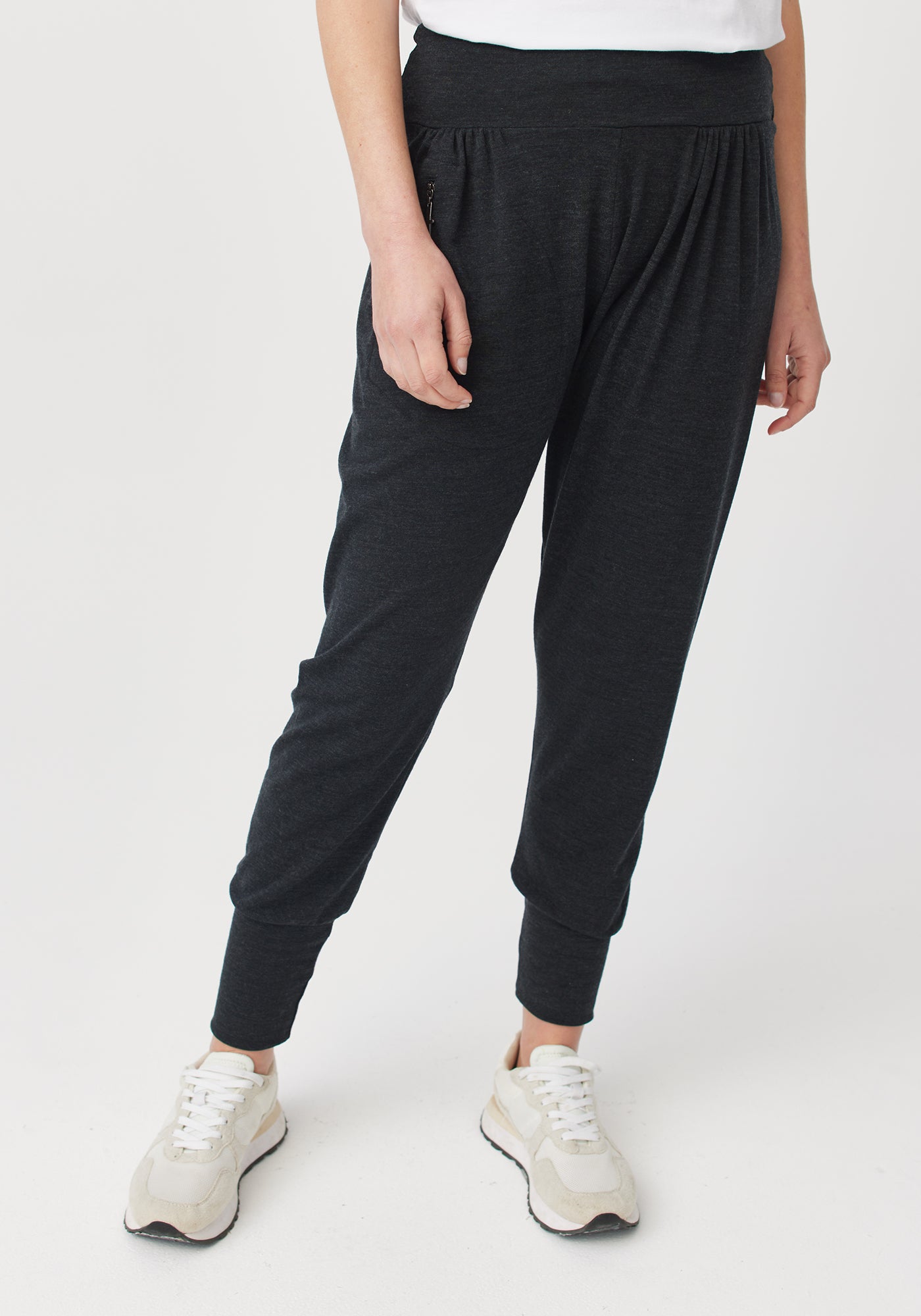 One day, we woke up and decided to make the best pants ever. Pants that you enjoy wearing, pants that make other pants jealous. So, we added a comfy wide waistband, made sure they were extra-flattering, and added a clever zipped pocket for you to store all your prized possessions (or at least the small ones). Wear them while you work from home, explore the outdoors, or even in the yoga studio - the ankle cuffs will hold them in place when you’re upside down. And if you’re expecting, thank us later (yes, food babies count). Weaving together style, comfort, and sustainability, these are the only pants you’ll want to wear from now on. Sorry, other pants.