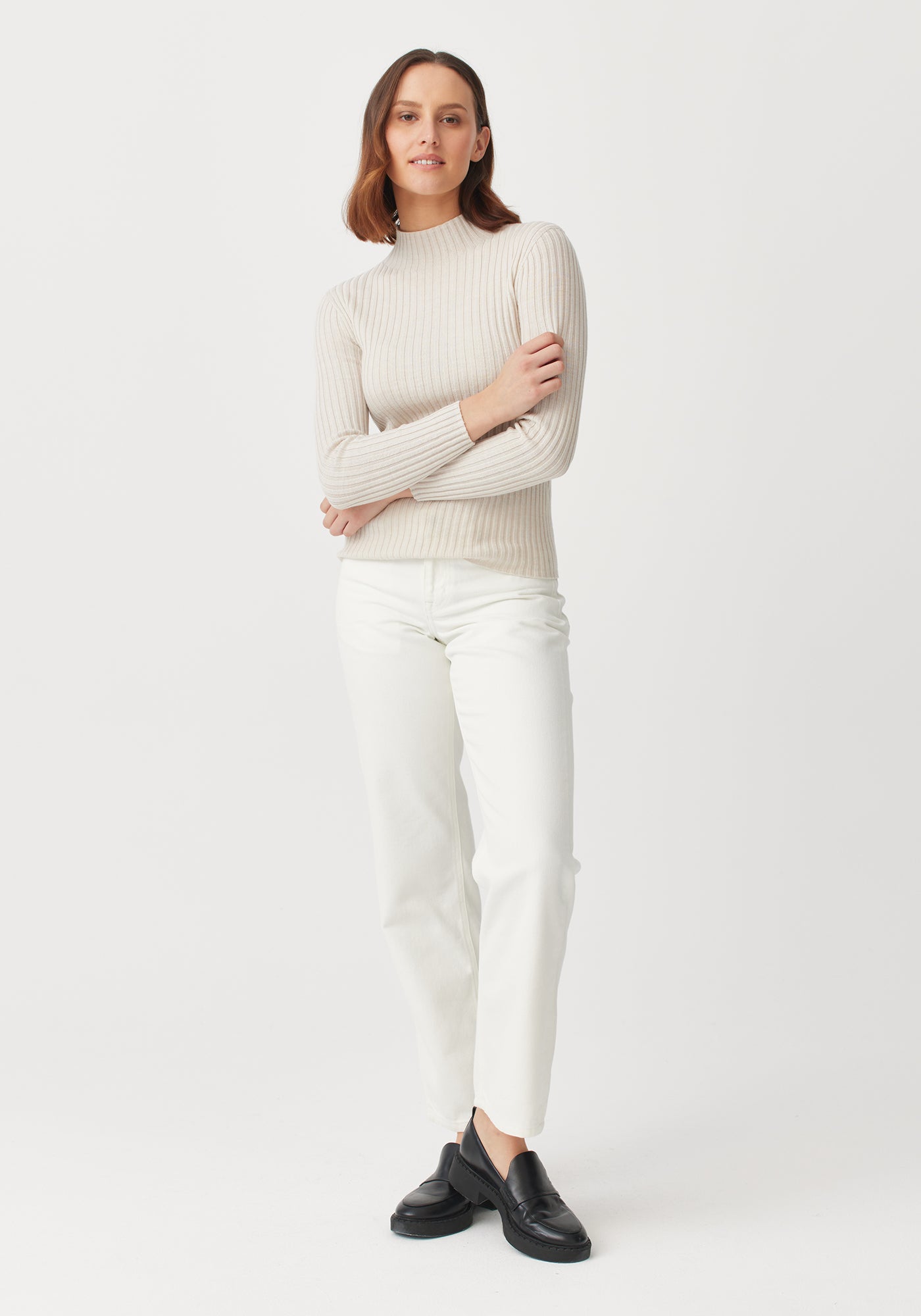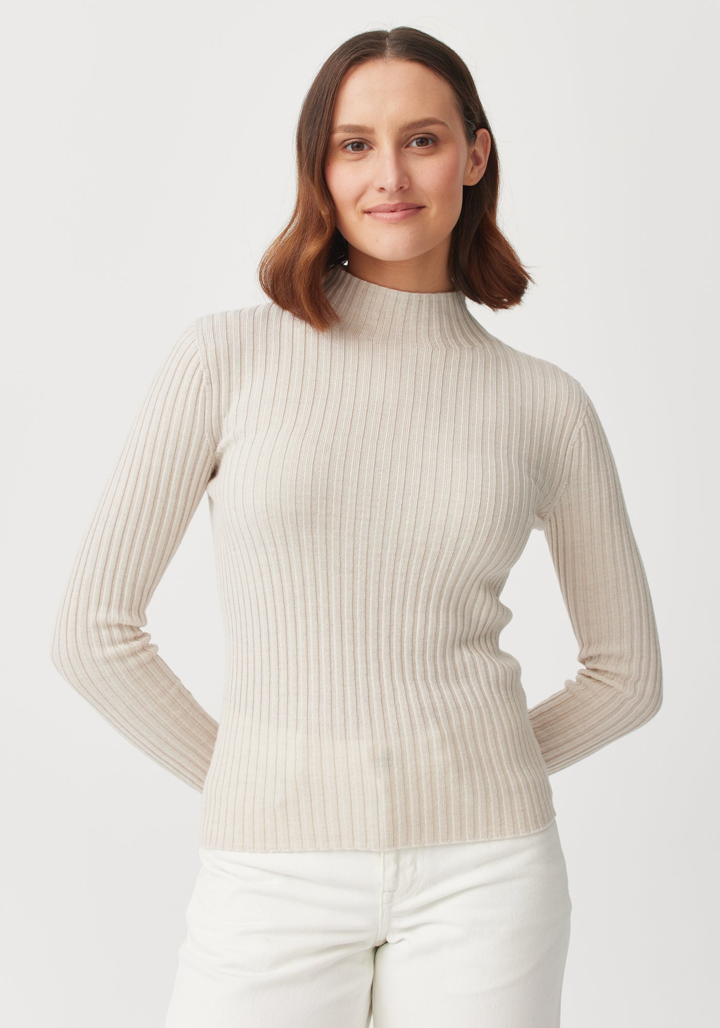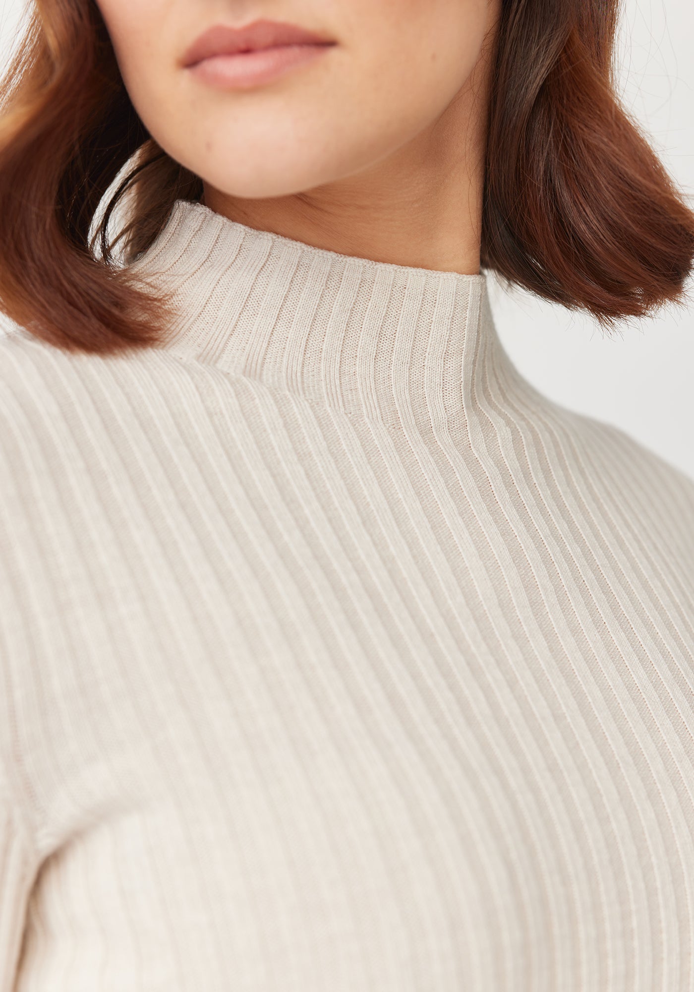 Set to become a wardrobe staple, the Lucia is loved for its layering abilities. Wear it under coats and jackets in the depths of winter and on its own in the shoulder seasons. A flattering funnel neckline and subtle rib detail, make this a super versatile piece.