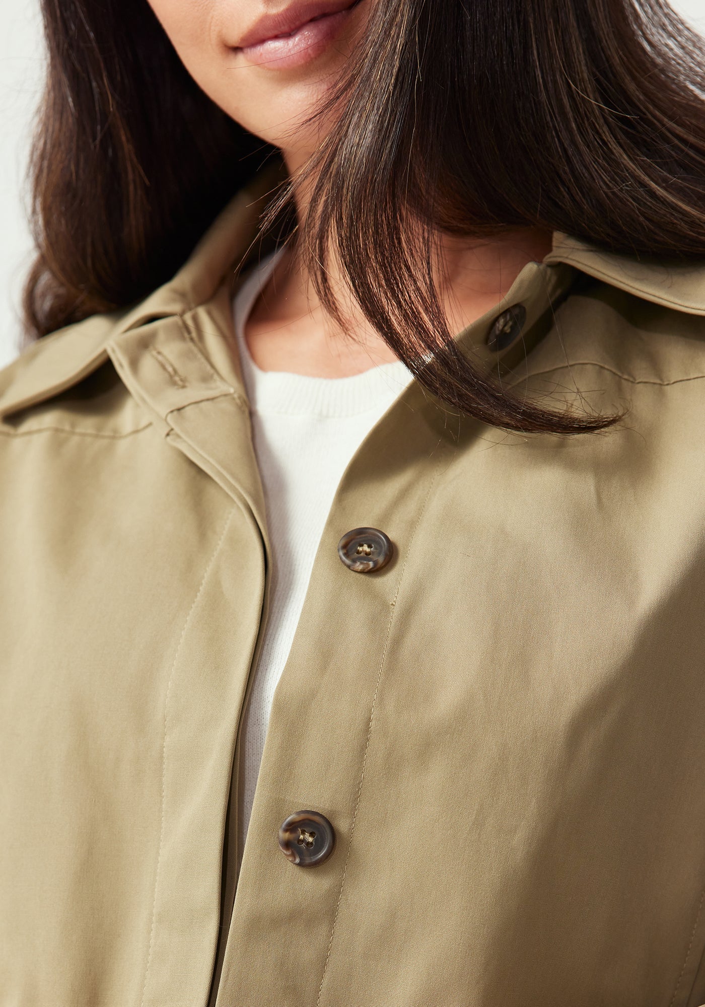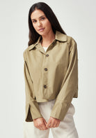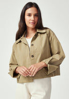Discover the art of versatile layering with this perfectly cropped jacket that bridges the gap between structured and relaxed. Cut from 100% organic cotton, this piece balances utilitarian-inspired design with everyday sophistication. The cropped silhouette and clean button-front closure offer a modern take on classic outerwear. Whether styled over dresses or paired with tailored trousers, this jacket adds instant polish without feeling overly formal.