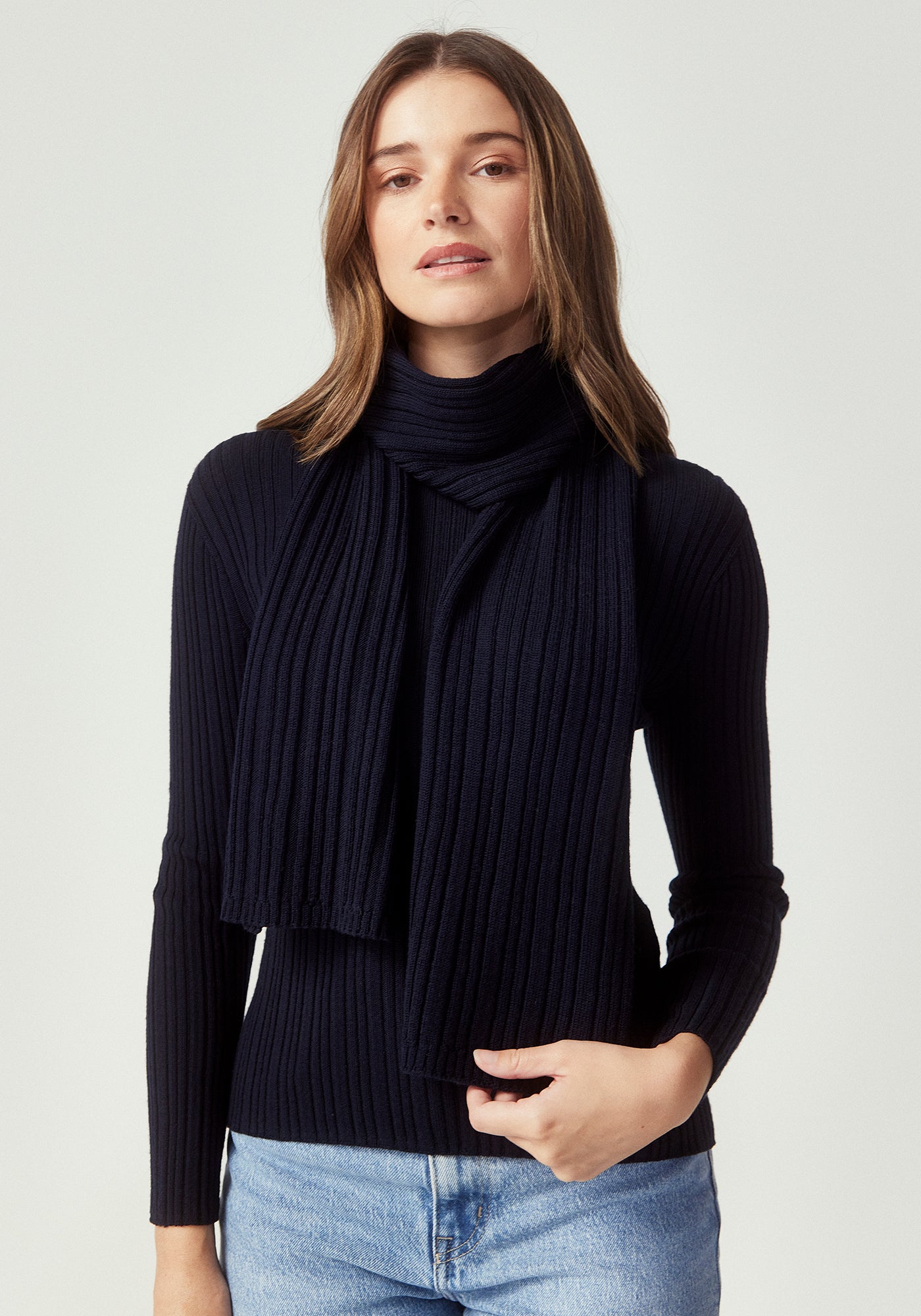 Rib Merino Scarf in Deep Blue