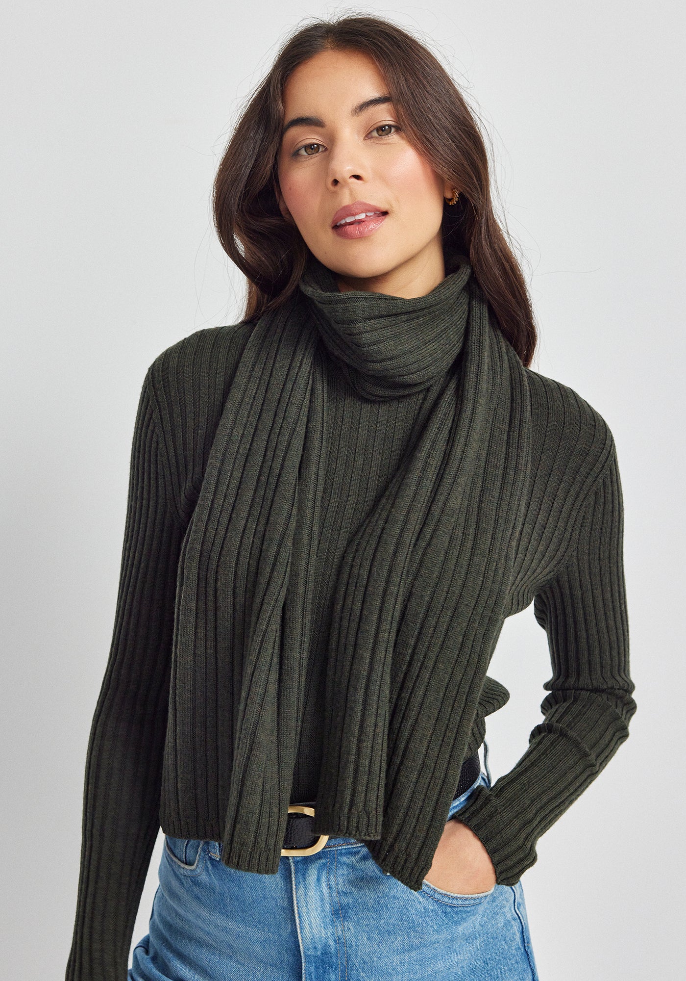 Rib Merino Scarf in Forest