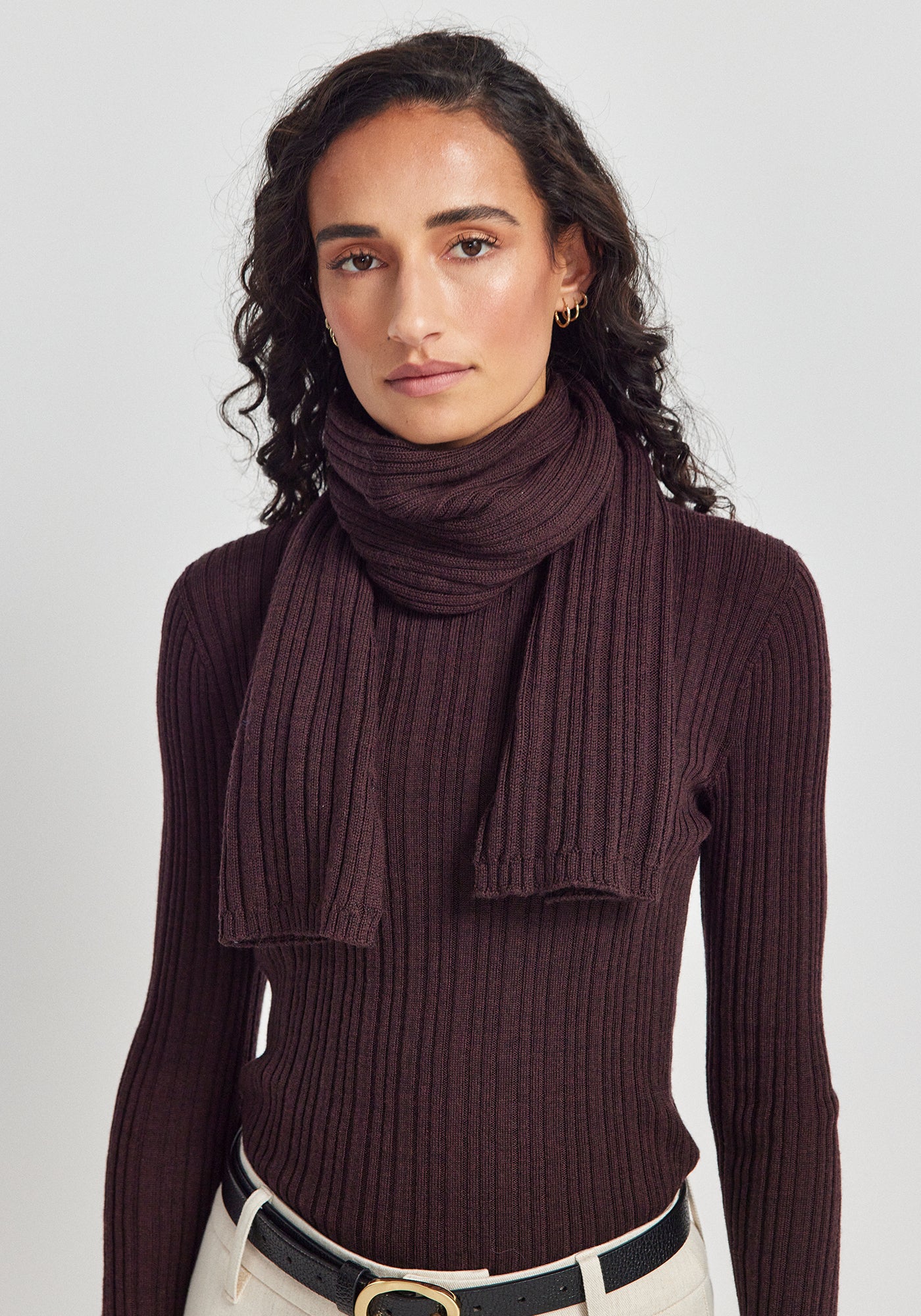 Rib Merino Scarf in Noirberry