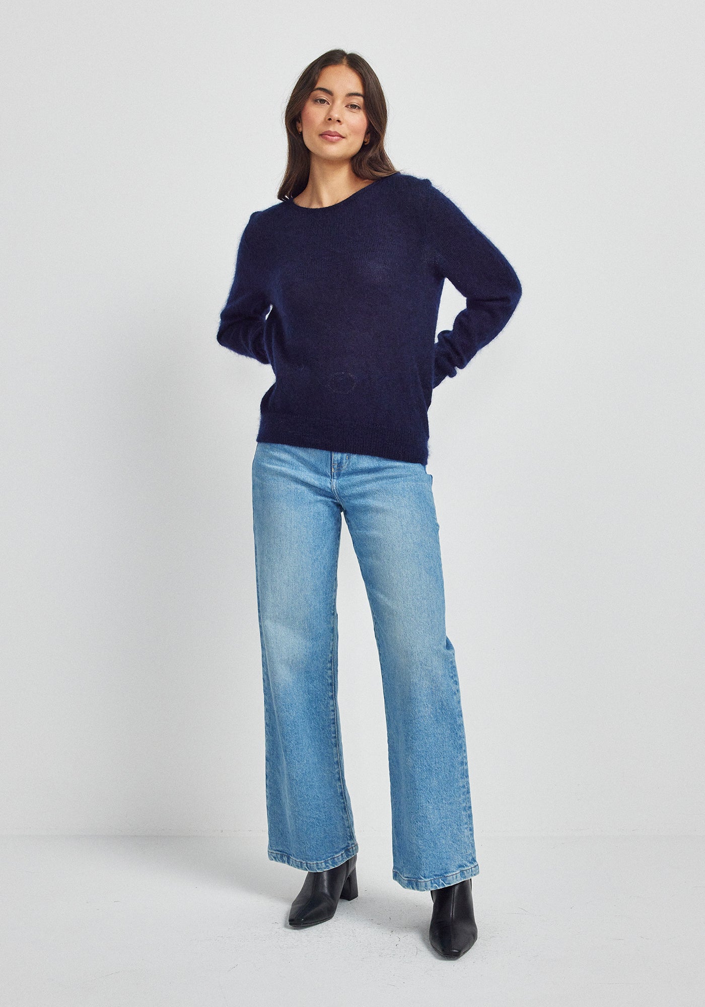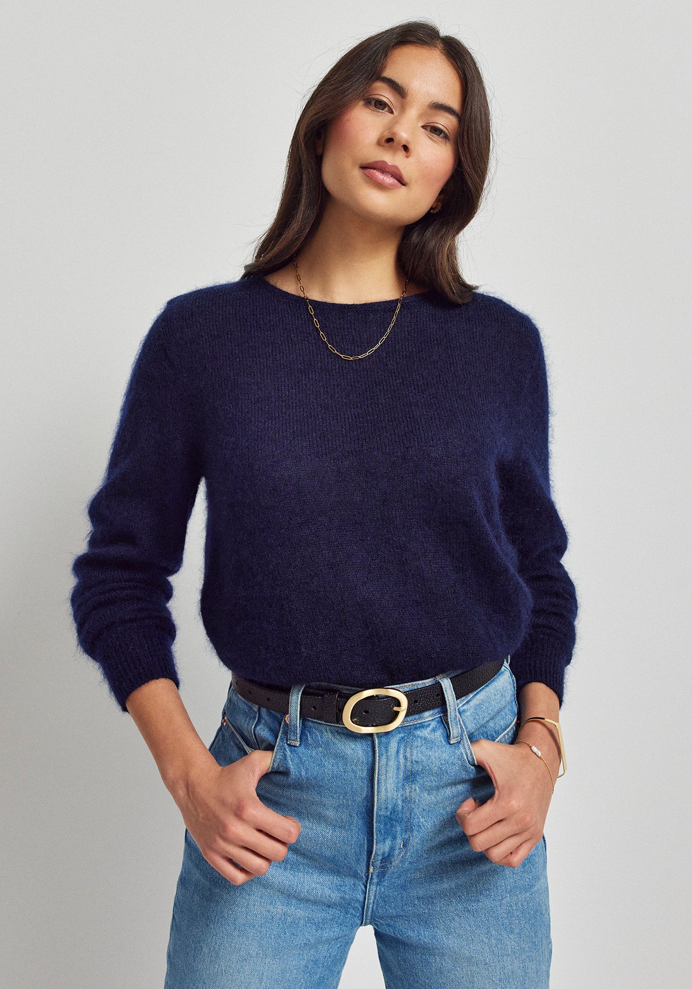 Indulge in luxurious comfort with this exquisitely crafted sweater made from a sumptuous blend of 70% Super Kid Mohair and 30% silk. The crew neck design offers an incredibly soft, cloud-like feel with a subtle lustrous finish. Perfect for both casual occasions and elevated everyday wear.