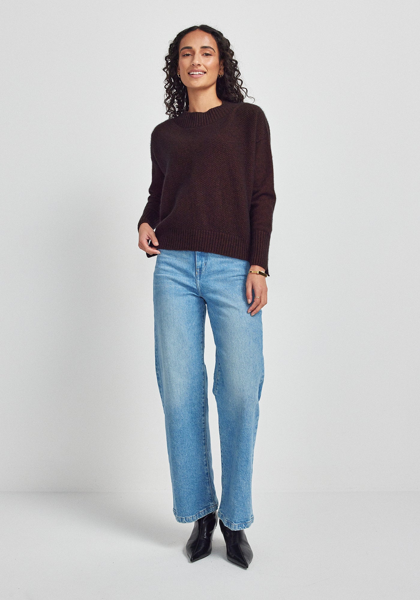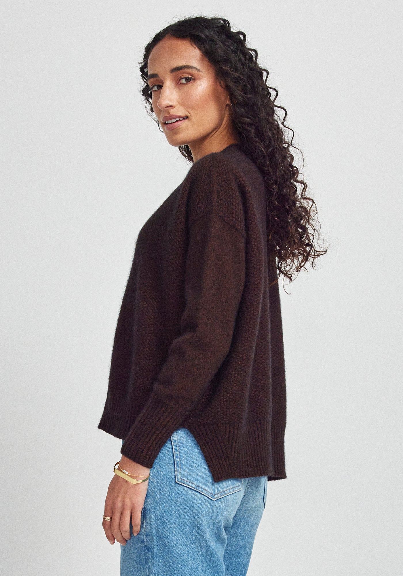 Oh-so-soft and cosy, the Sofia Sweater is a new and improved take on our popular Mosey Sweater. The perfect throw-on for weekend brunches, lounging at home or walking the dog, this stylish piece will keep you warm as toast without weighing you down. Featuring a relaxed, boxy fit and fine textured knit structure with ribbed trims, side splits and a slightly dropped back hem. Knitted from our signature Ecopossum™ blend of merino, possum and silk this will bring a little eco-friendly luxury to your everyday look.
