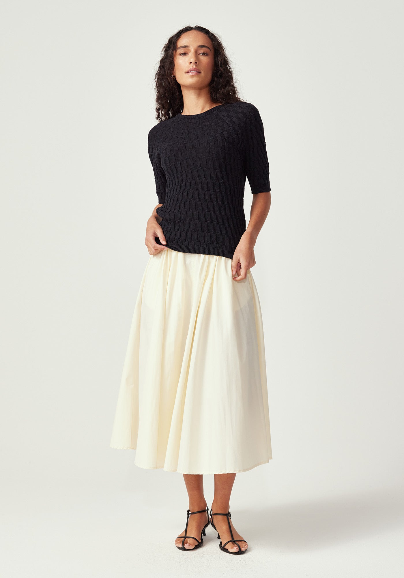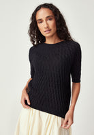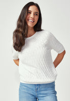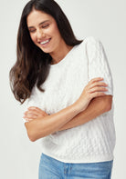 Embrace relaxed elegance with this beautifully textured knit tee that brings effortless style to your everyday wardrobe. Crafted from a premium blend of 73% linen and 27% cotton, this distinctive textured knit makes a standalone statement, or layer it up under your favourite blazer or jacket. The breathable natural blend delivers a soft, lived-in feel that only gets better with each wear.