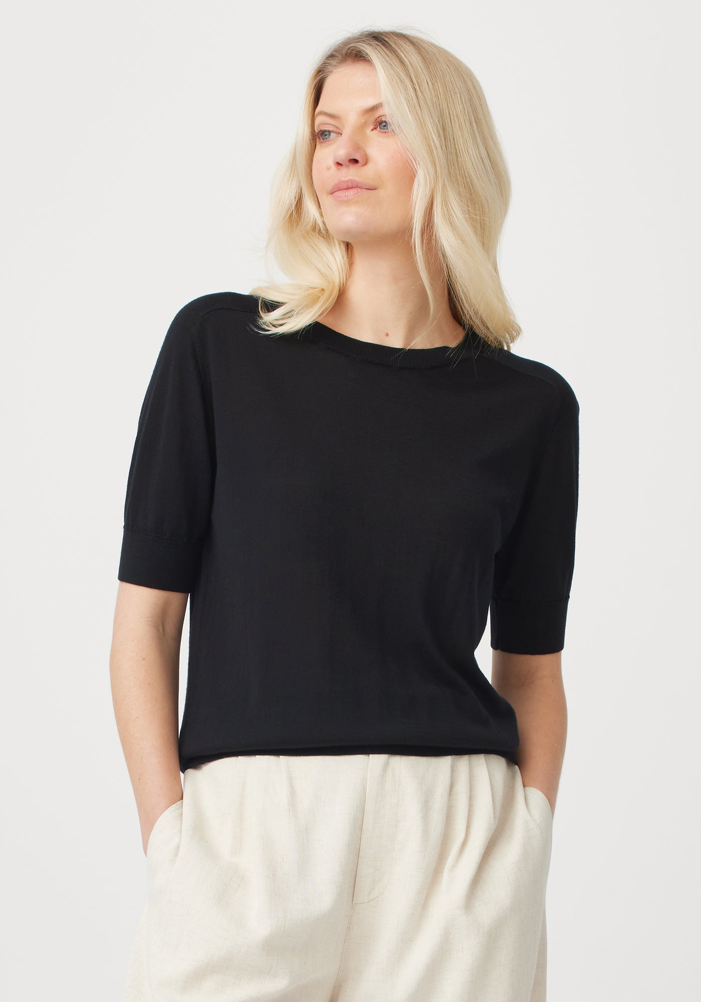 Stay cool and chic in our Tenera Knit Tee, made from our new CoolTree™ fabric. The ultrafine blend of Glenthorne merino and TENCEL™ give the garment a natural lustre, accentuated by the gentle drape of the fit.