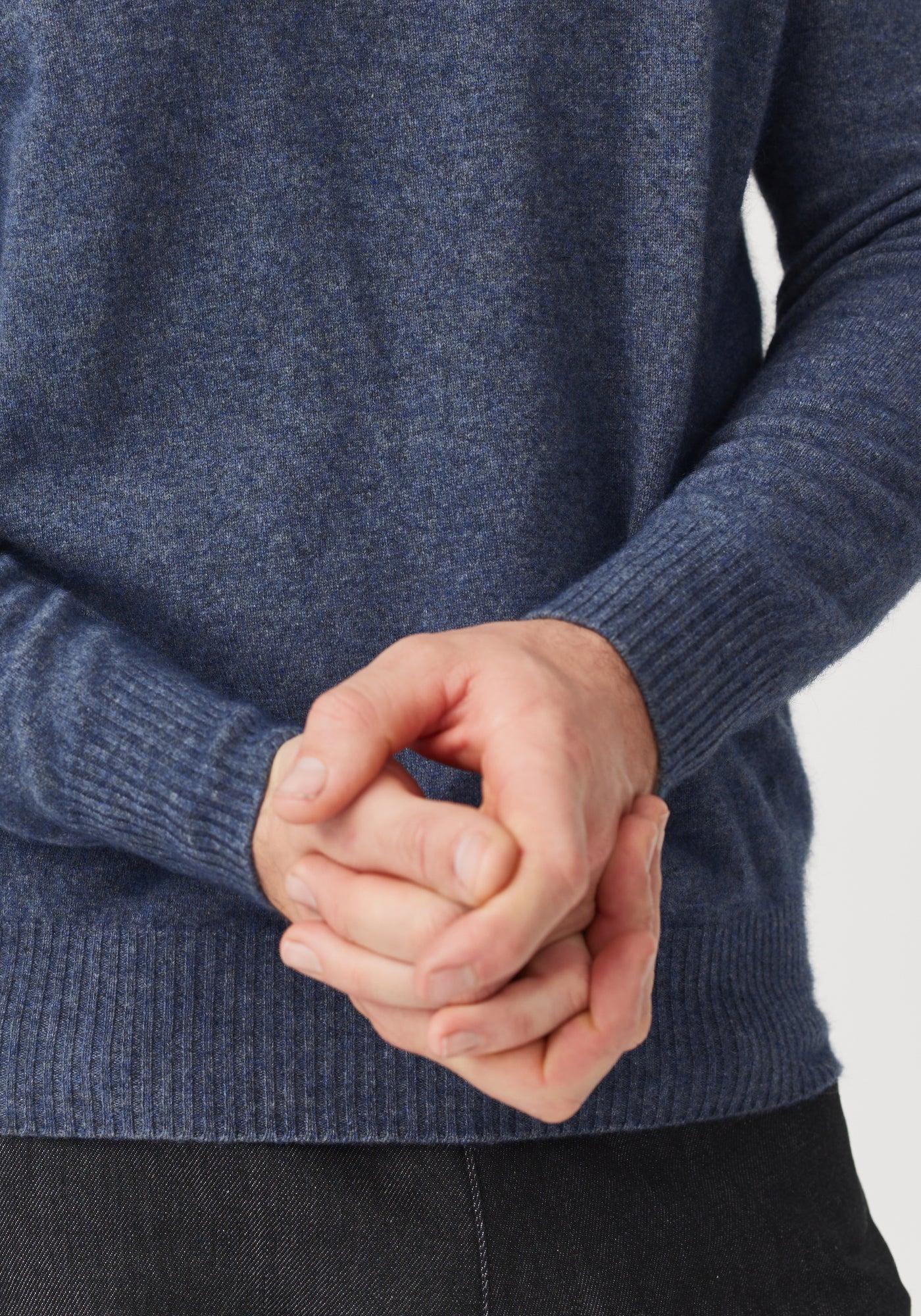 This classic sweater radiates a relaxed yet sophisticated vibe, with a subtle crossover v neckline housing a hood to keep your head cosy. An understated silhouette lets the luxury of this exquisite blend shine through.