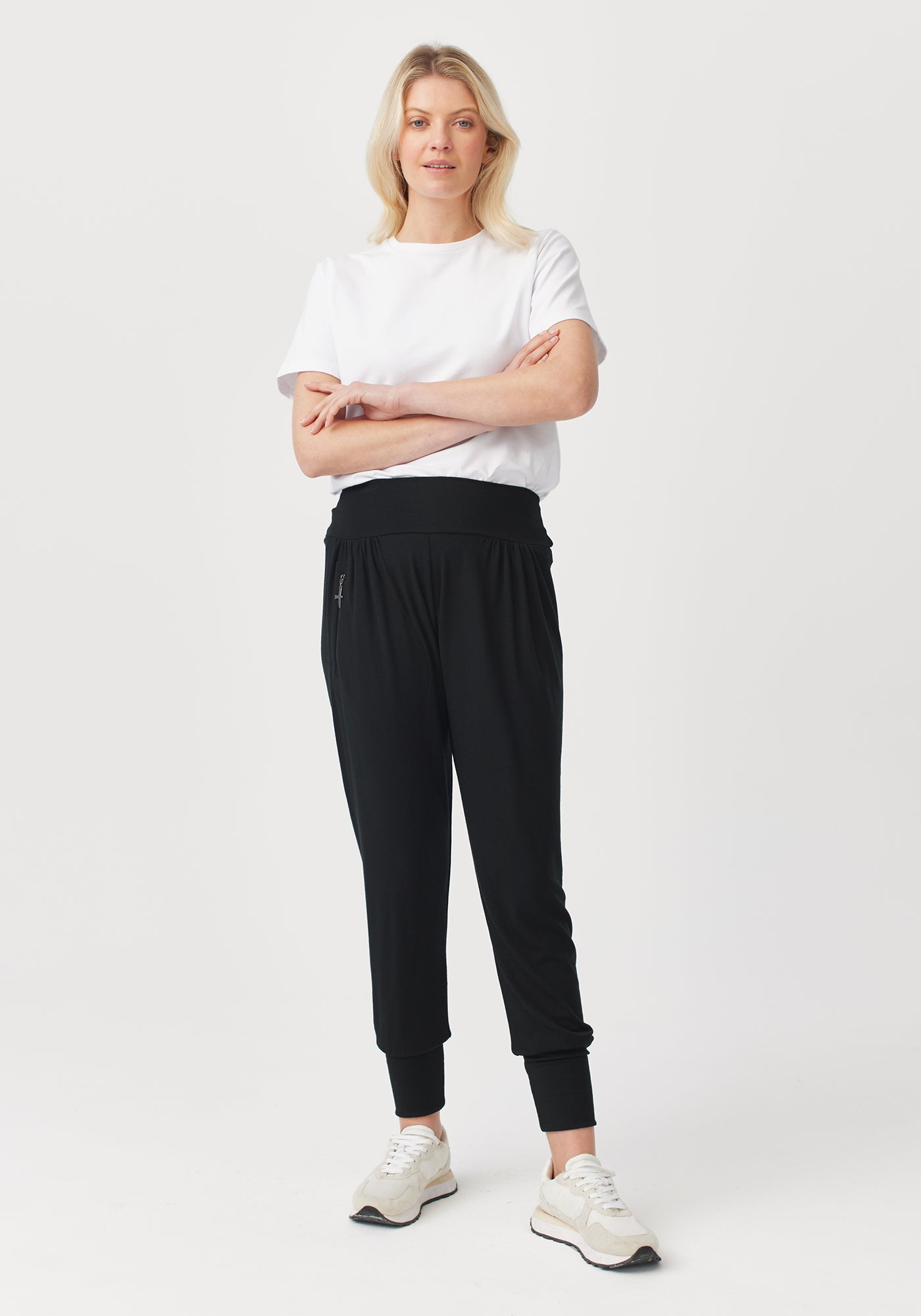 One day, we woke up and decided to make the best pants ever. Pants that you enjoy wearing, pants that make other pants jealous. So, we added a comfy wide waistband, made sure they were extra-flattering, and added a clever zipped pocket for you to store all your prized possessions (or at least the small ones). Wear them while you work from home, explore the outdoors, or even in the yoga studio - the ankle cuffs will hold them in place when you’re upside down. And if you’re expecting, thank us later (yes, food babies count). Weaving together style, comfort, and sustainability, these are the only pants you’ll want to wear from now on. Sorry, other pants.