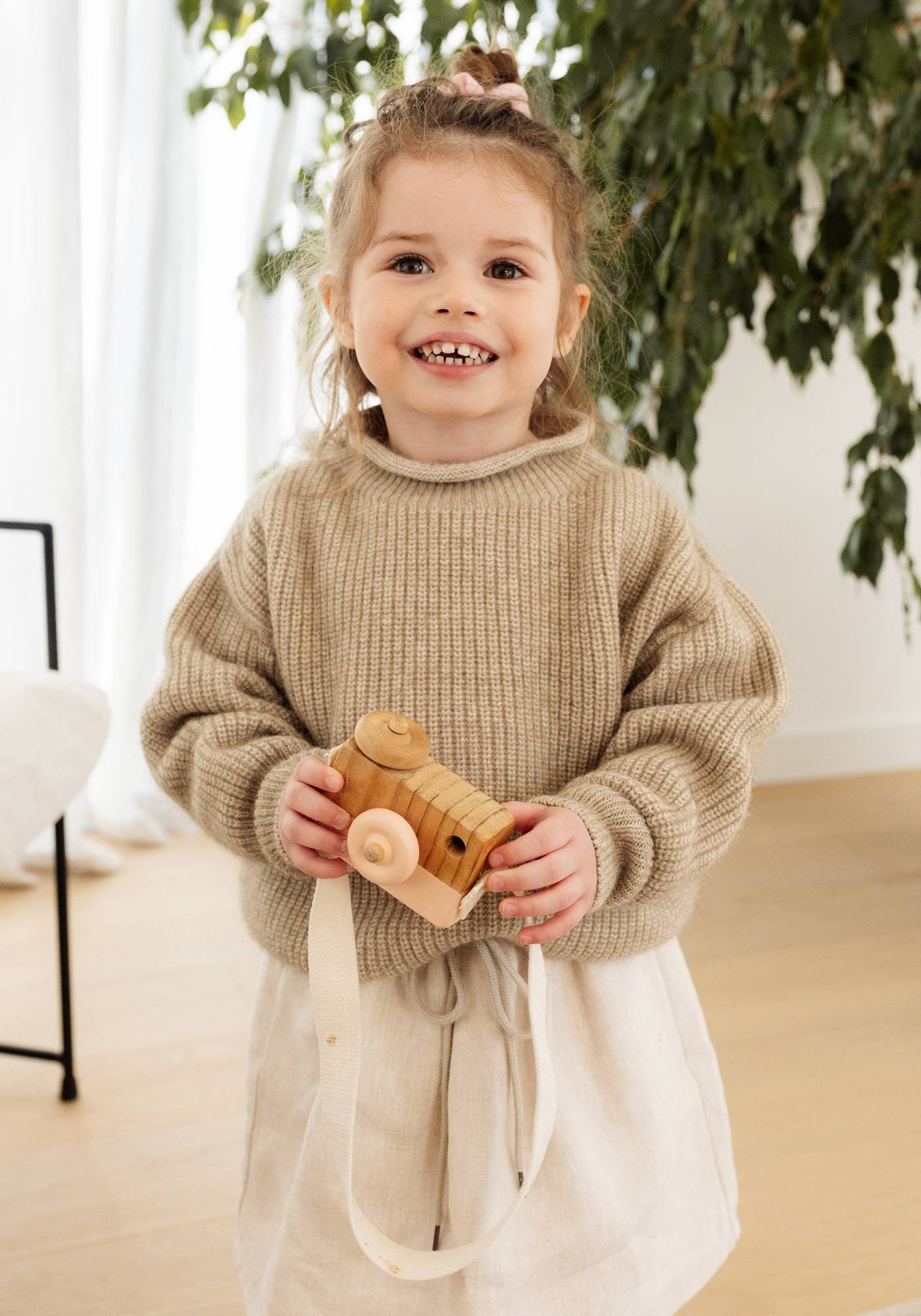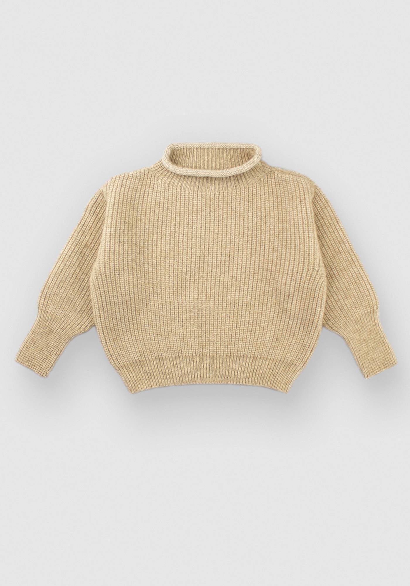 Snuggle up in the Iti Fig Crew. This cosy knit with its high neckline will cocoon them in warmth. Lovingly made from merino, possum and silk this chunky knit provides versatility and durability so it can be passed down to other little family members.