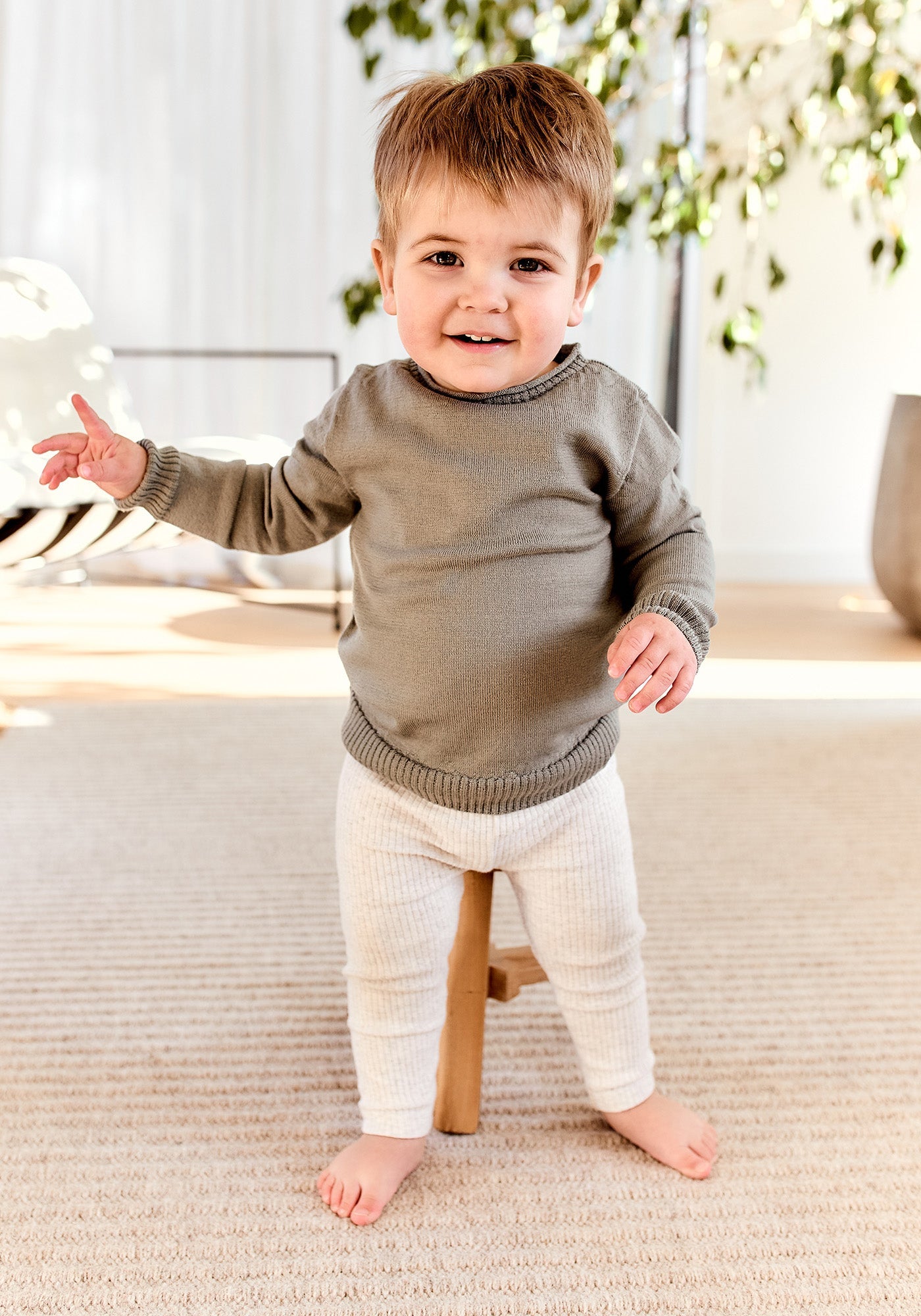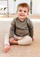 Timeless and ageless, this premium quality crew can be handed down for generations. The natural powers of merino give this knit amazing temperature regulating properties and breathability to keep your little one comfortable in any weather.
