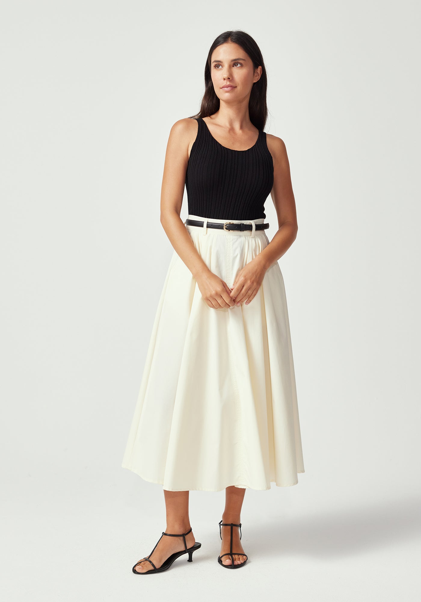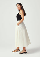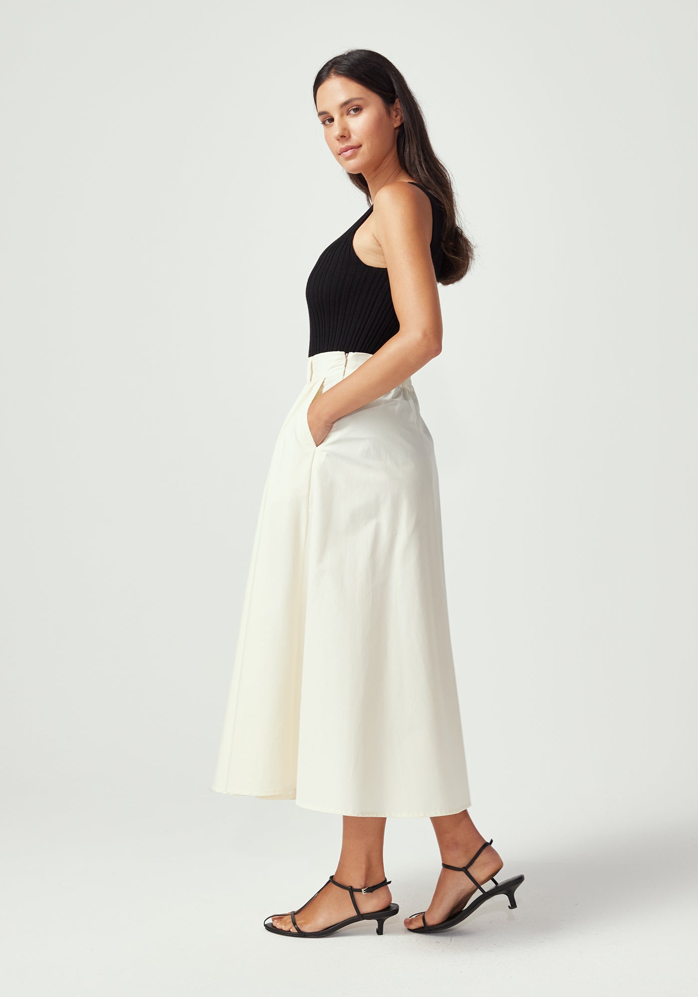 Finding the perfect balance of structure and femininity, the midi-length Gianna Skirt embodies an iconic 1950's elegance. Featuring a flattering high waist with belt loops, front pleats that create beautiful movement, and practical side pockets for modern functionality. The midi length hits at the most flattering point, making this piece equally suited for the boardroom or dressed up for a girl's night out.