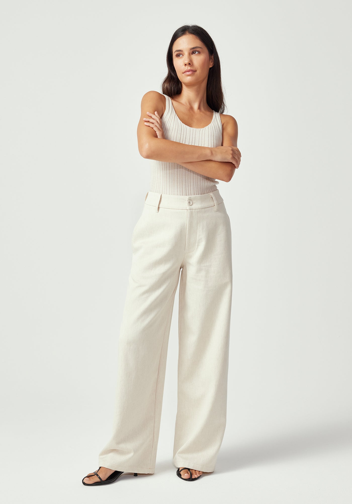 Experience the perfect fusion of comfort and refinement with these classic wide-leg trousers. The thoughtful blend of 43% modal, 39% organic cotton, and 18% linen creates a fabric that moves beautifully while maintaining structure and breathability throughout the day. The high-waisted silhouette and generous wide-leg cut create an effortlessly sophisticated look that flatters every figure. These pants transition seamlessly from casual weekends to elevated occasions, proving that comfort and style can coexist beautifully.
