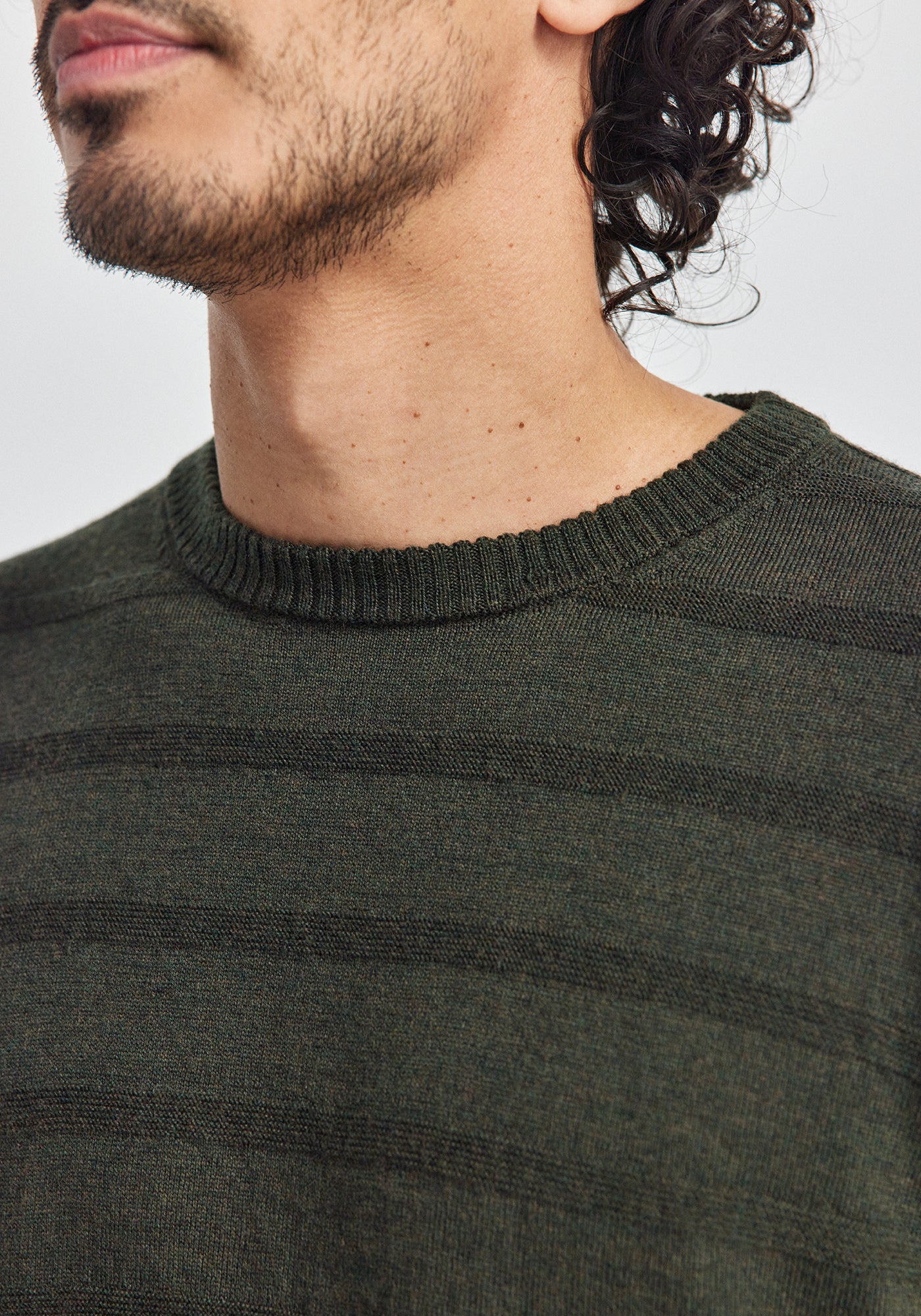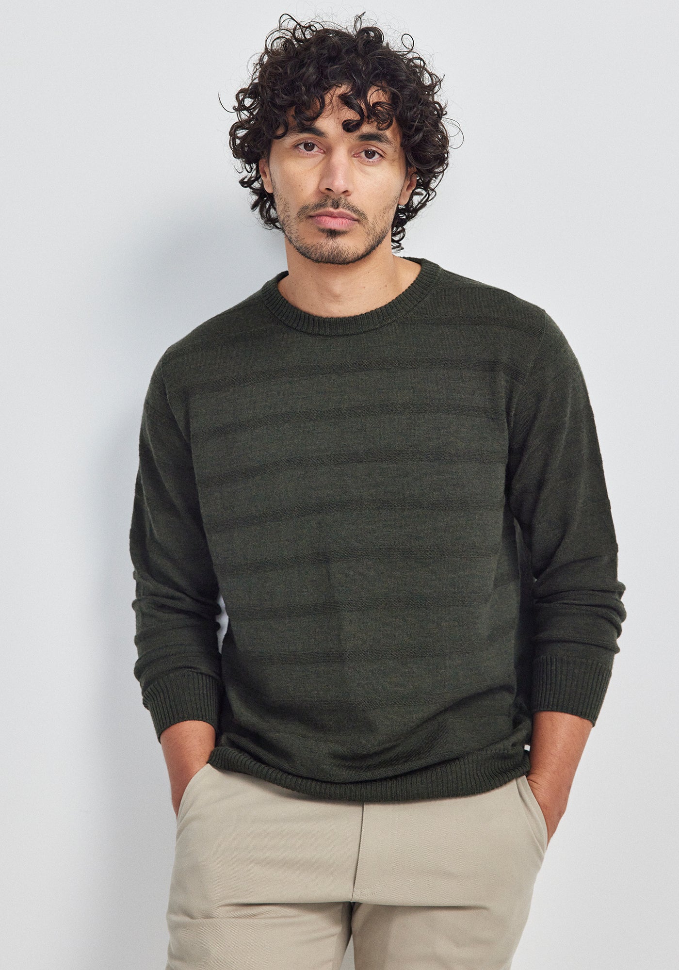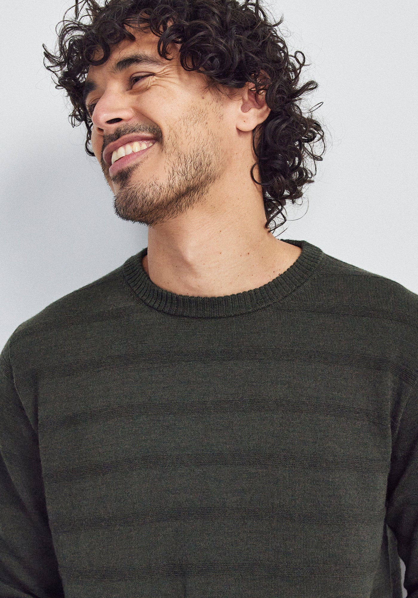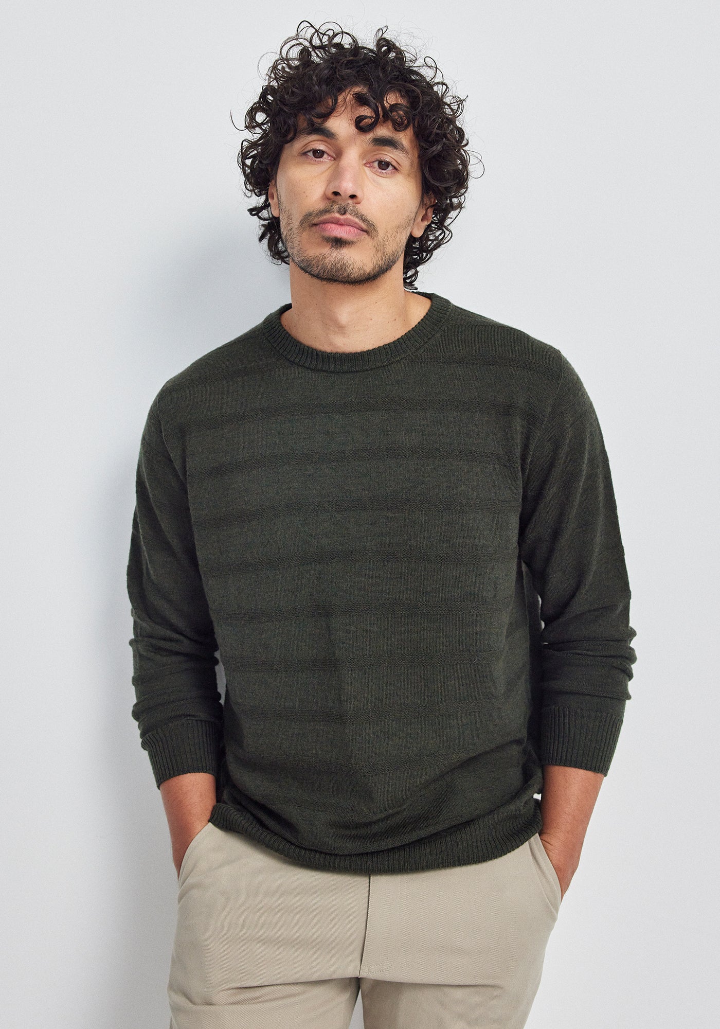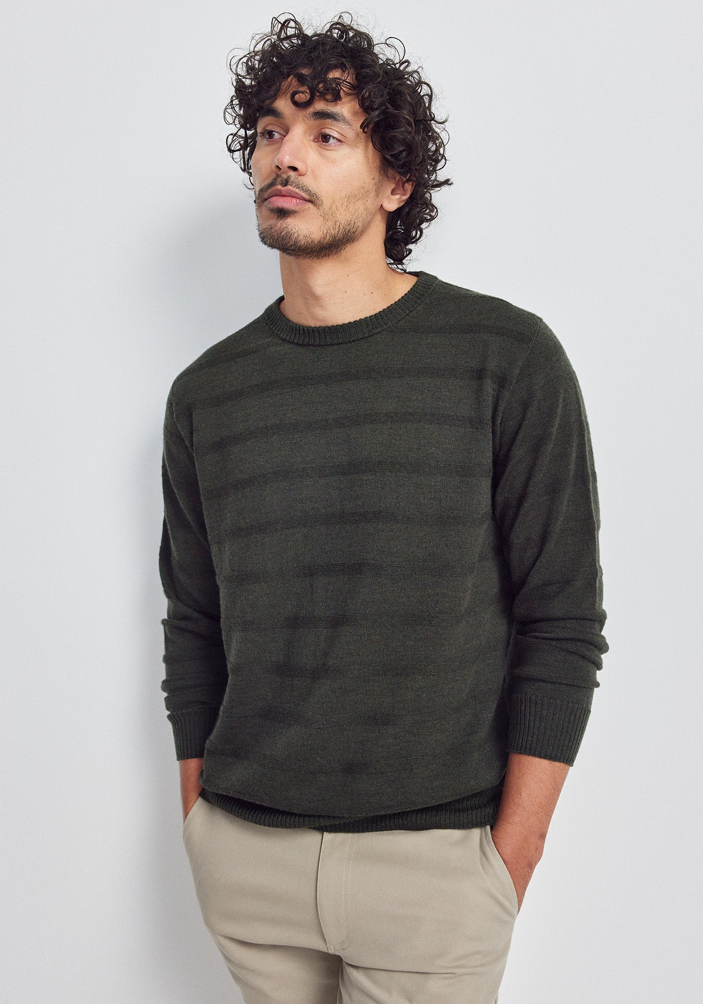 The Arthur Texture Crew is our take on the enduring crew neck, thoughtfully updated with a subtle, woven stripe for quiet distinction.