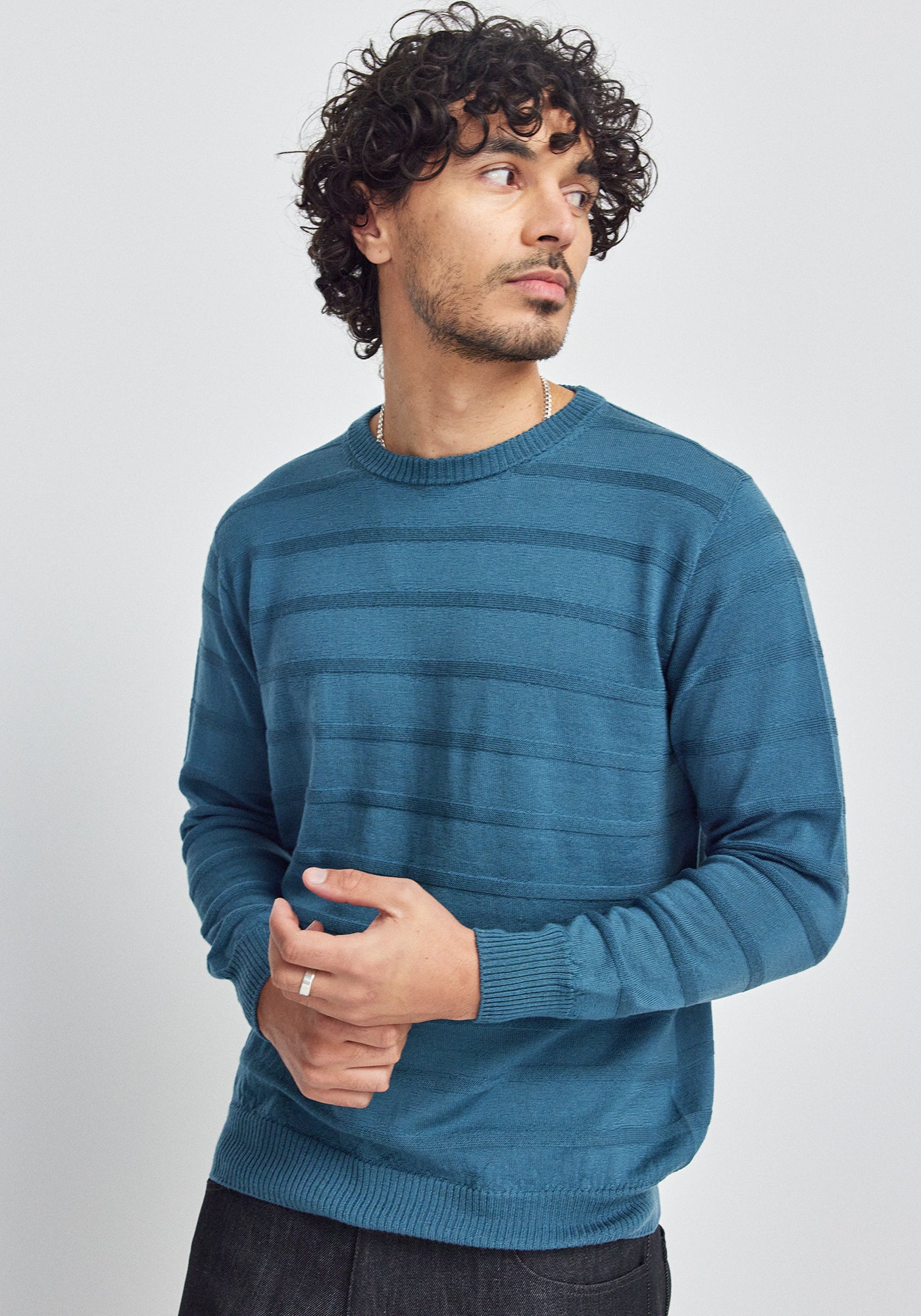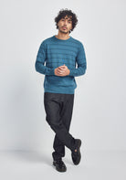 The Arthur Texture Crew is our take on the enduring crew neck, thoughtfully updated with a subtle, woven stripe for quiet distinction.