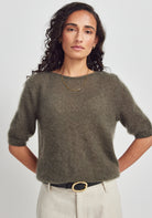 Sumptuous, light and soft to touch, this is the tee to take you through the seasons. Made from a beautiful blend of mohair and silk, this short-sleeve knit is a standout.