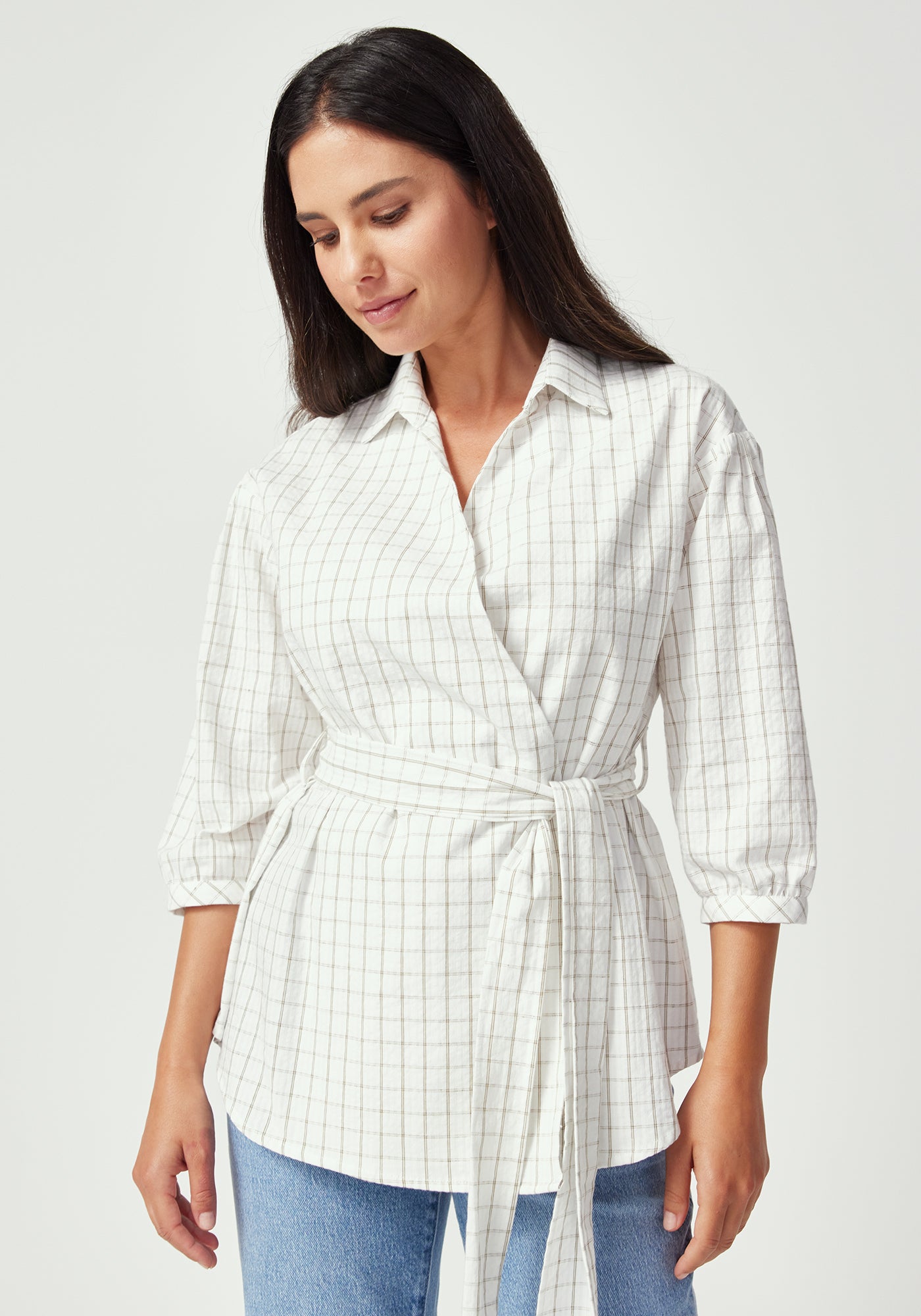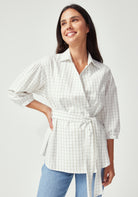 Embrace effortless sophistication with this beautifully tailored wrap-style shirt that merges contemporary elegance with classic design. The flattering wrap with tie waist creates a feminine shape, while the premium sustainable fabric blend ensures comfort and breathability. Perfect for both professional settings and casual occasions, this versatile piece elevates any wardrobe with its timeless appeal.