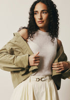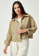 Discover the art of versatile layering with this perfectly cropped jacket that bridges the gap between structured and relaxed. Cut from 100% organic cotton, this piece balances utilitarian-inspired design with everyday sophistication. The cropped silhouette and clean button-front closure offer a modern take on classic outerwear. Whether styled over dresses or paired with tailored trousers, this jacket adds instant polish without feeling overly formal.
