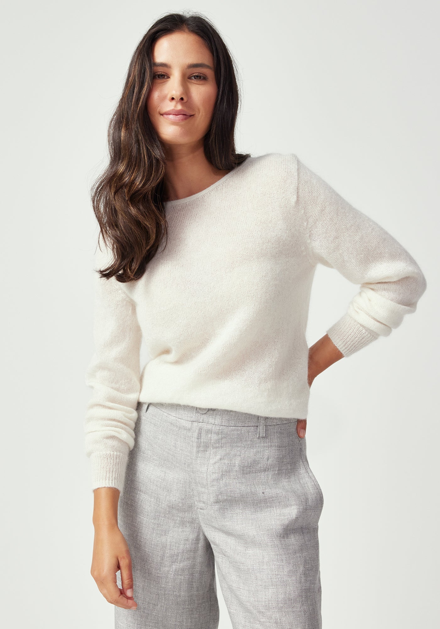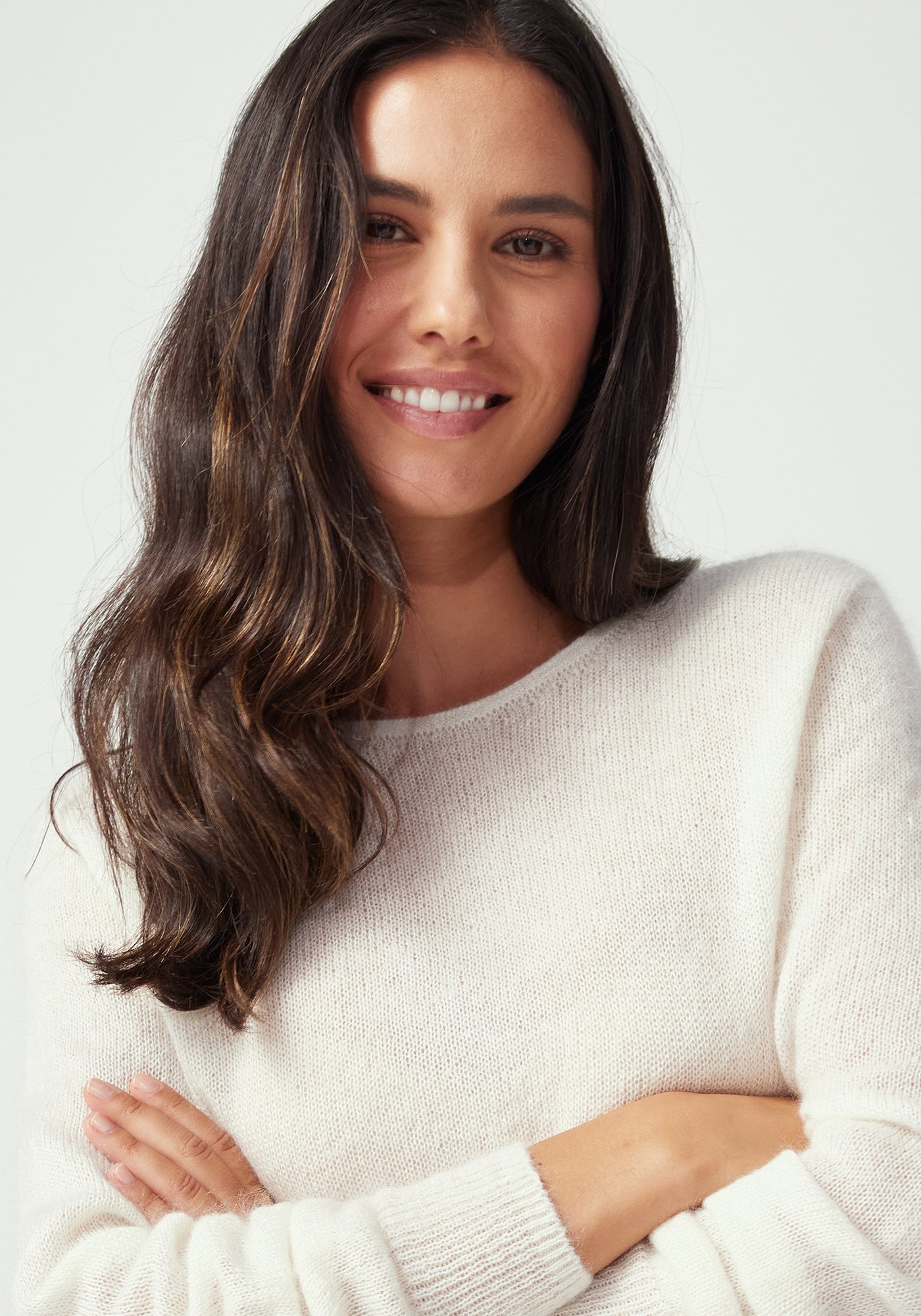 Beautiful crew. Light weight and soft. Very easy to wear. I have 3 (different colours of course). Wouldn't buy anywhere else.