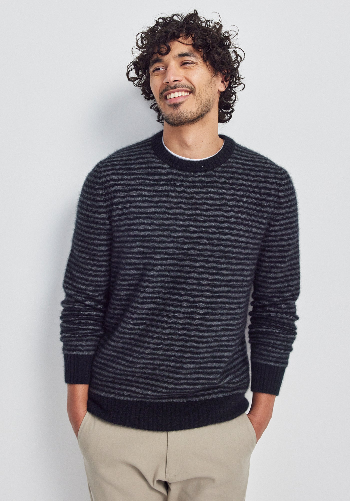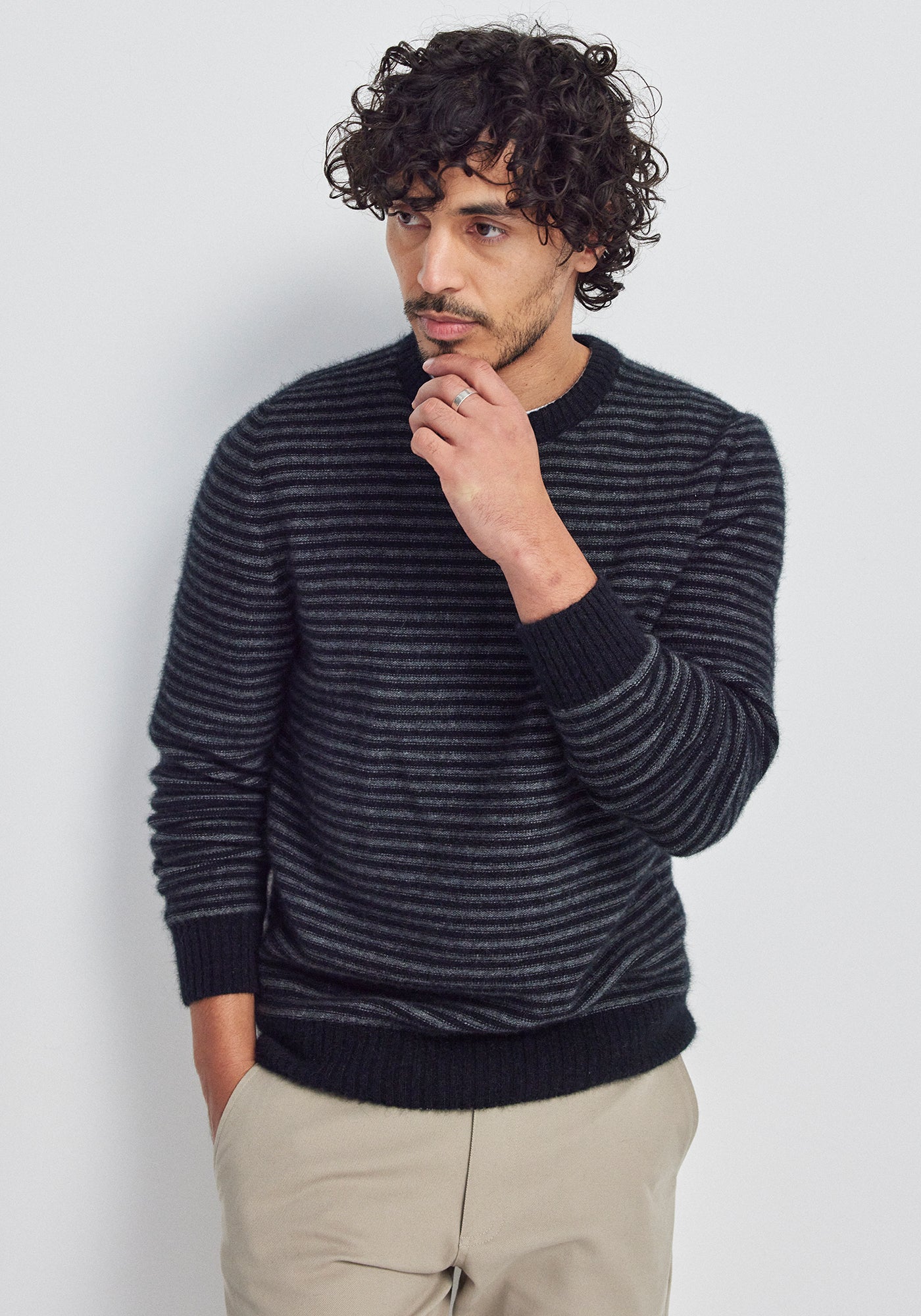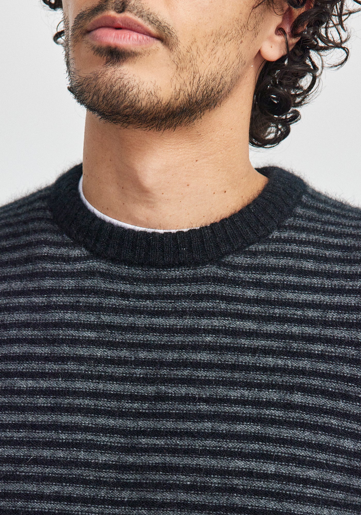 The unbeatable, weightless warmth of Ecopossum™, in a timeless crew-neck style, with subtle striped detail. You don't need to overthink this one, it's a sweater for the ages. The kind of piece you’ll reach for season after season, relaxed, refined, and utterly effortless.