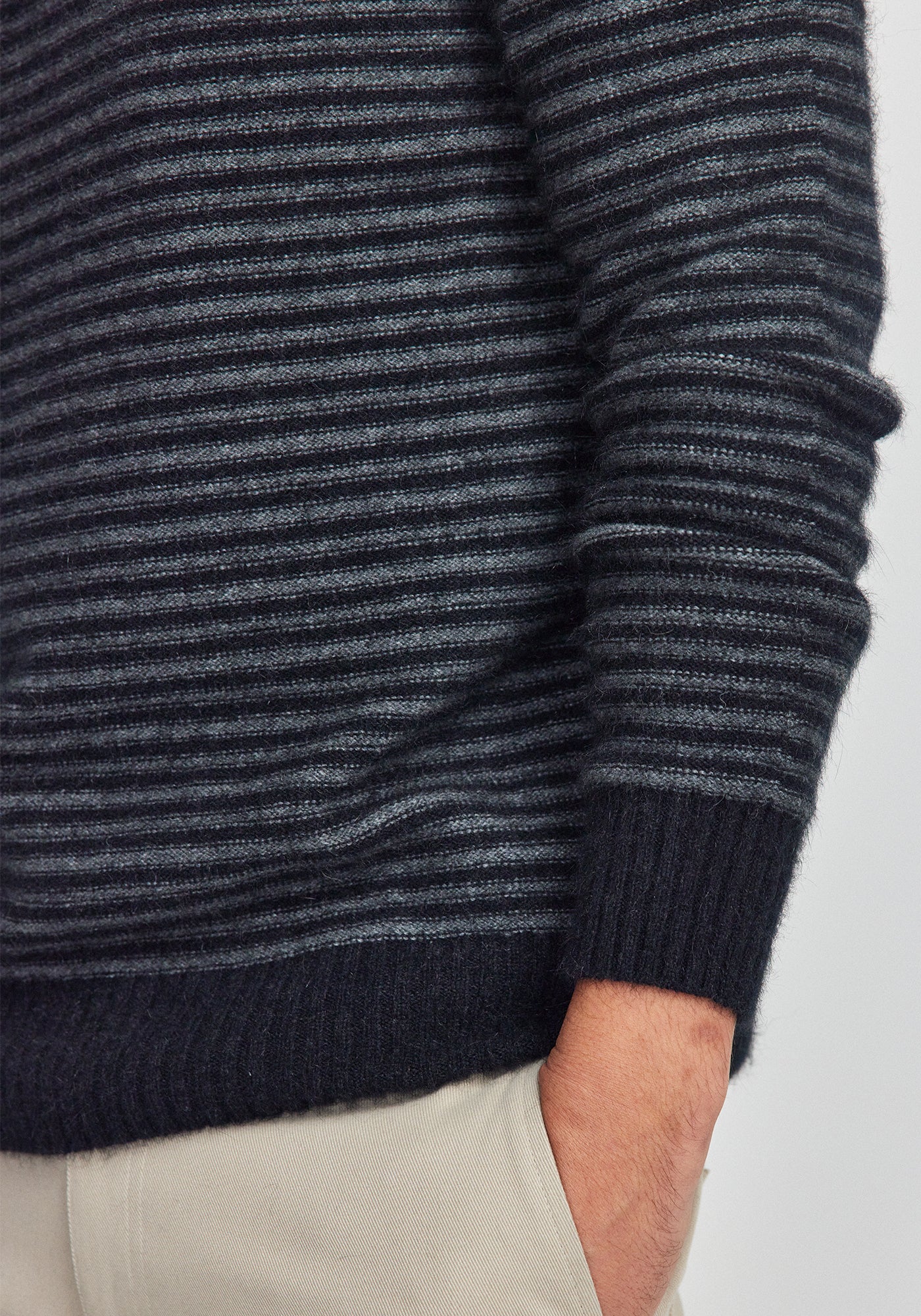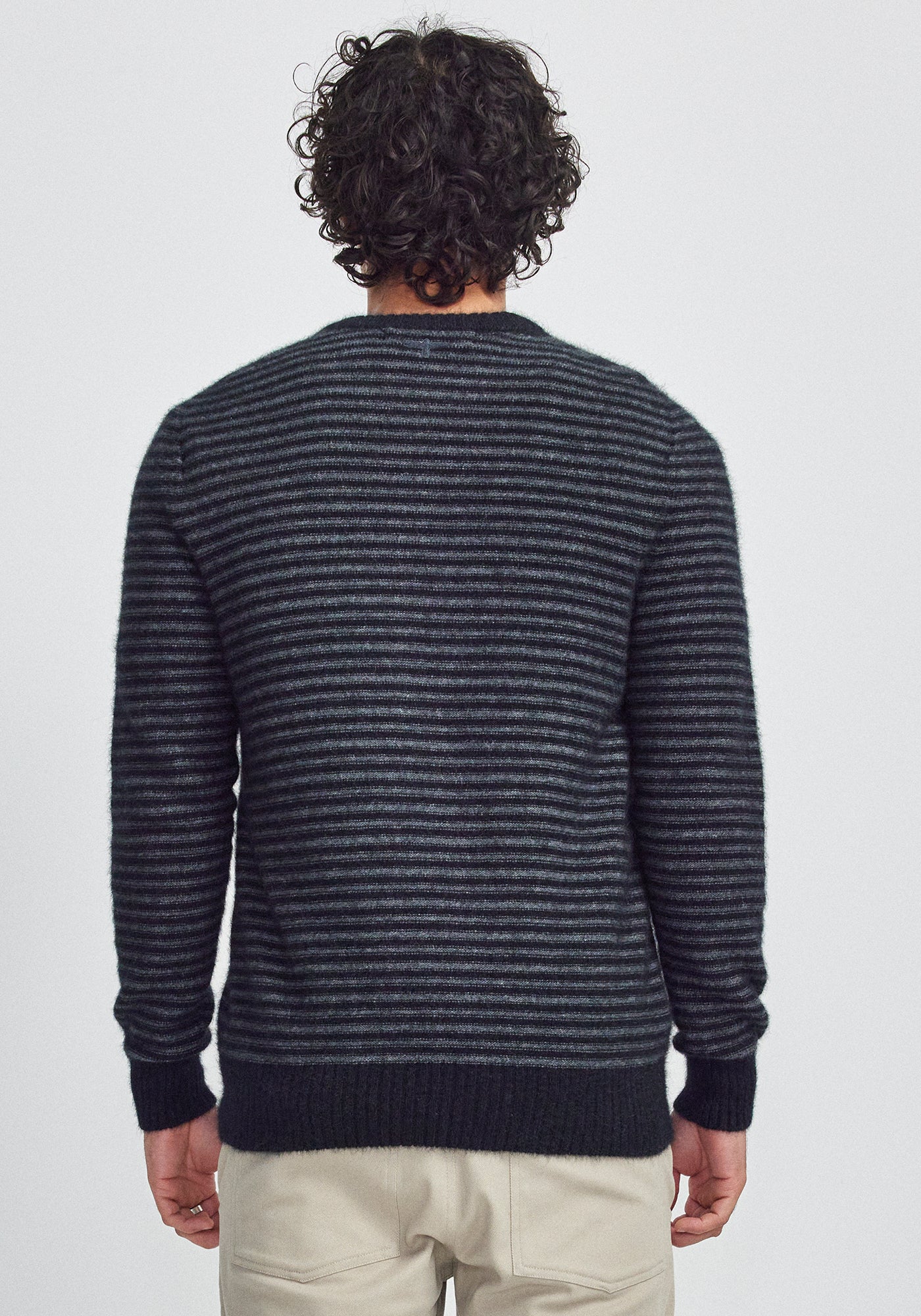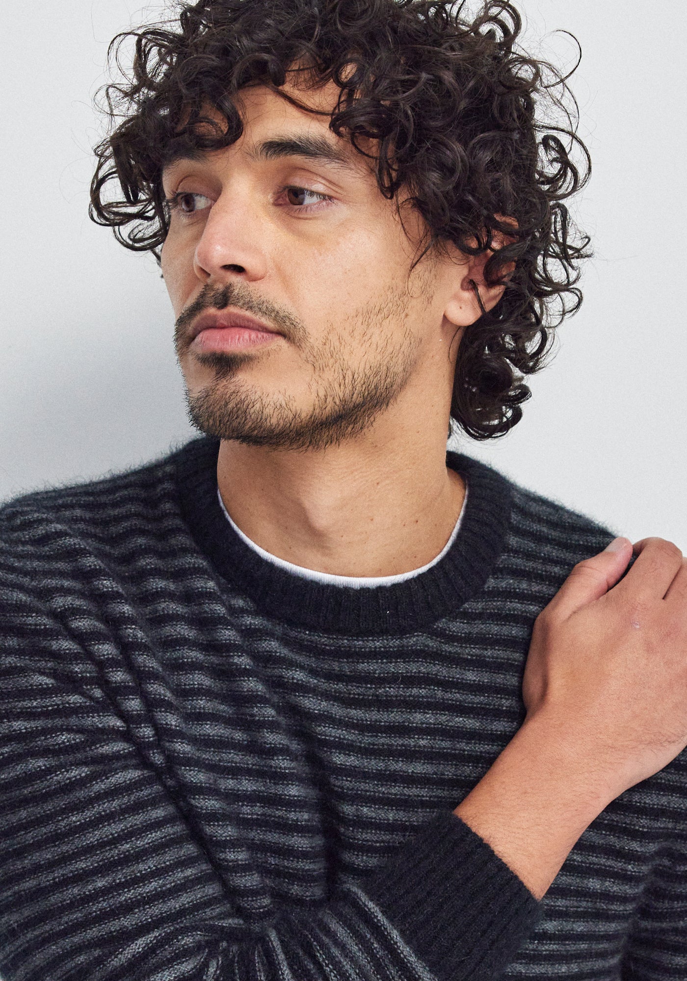The unbeatable, weightless warmth of Ecopossum™, in a timeless crew-neck style, with subtle striped detail. You don't need to overthink this one, it's a sweater for the ages. The kind of piece you’ll reach for season after season, relaxed, refined, and utterly effortless.
