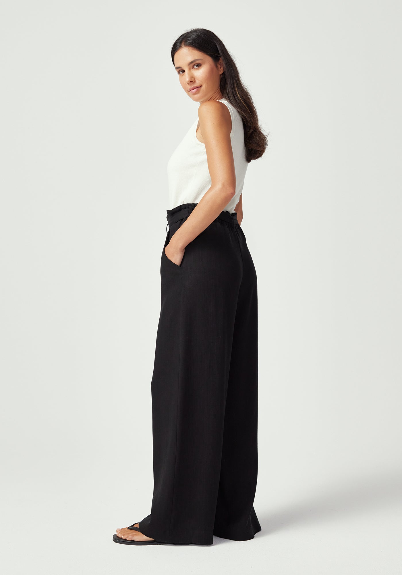 Meet your new favourite wide-leg trouser. Made from 100% TENCEL™, they offer the luxurious feel of silk with the practical benefits of a performance fabric that breathes and moves with you. The tie-waist detail adds a feminine touch while allowing for a customized fit, and the flowing wide-leg silhouette creates an elegant line that's both comfortable and flattering. Whether styled with fitted tops or flowing blouses, these pants deliver effortless polish for any occasion.