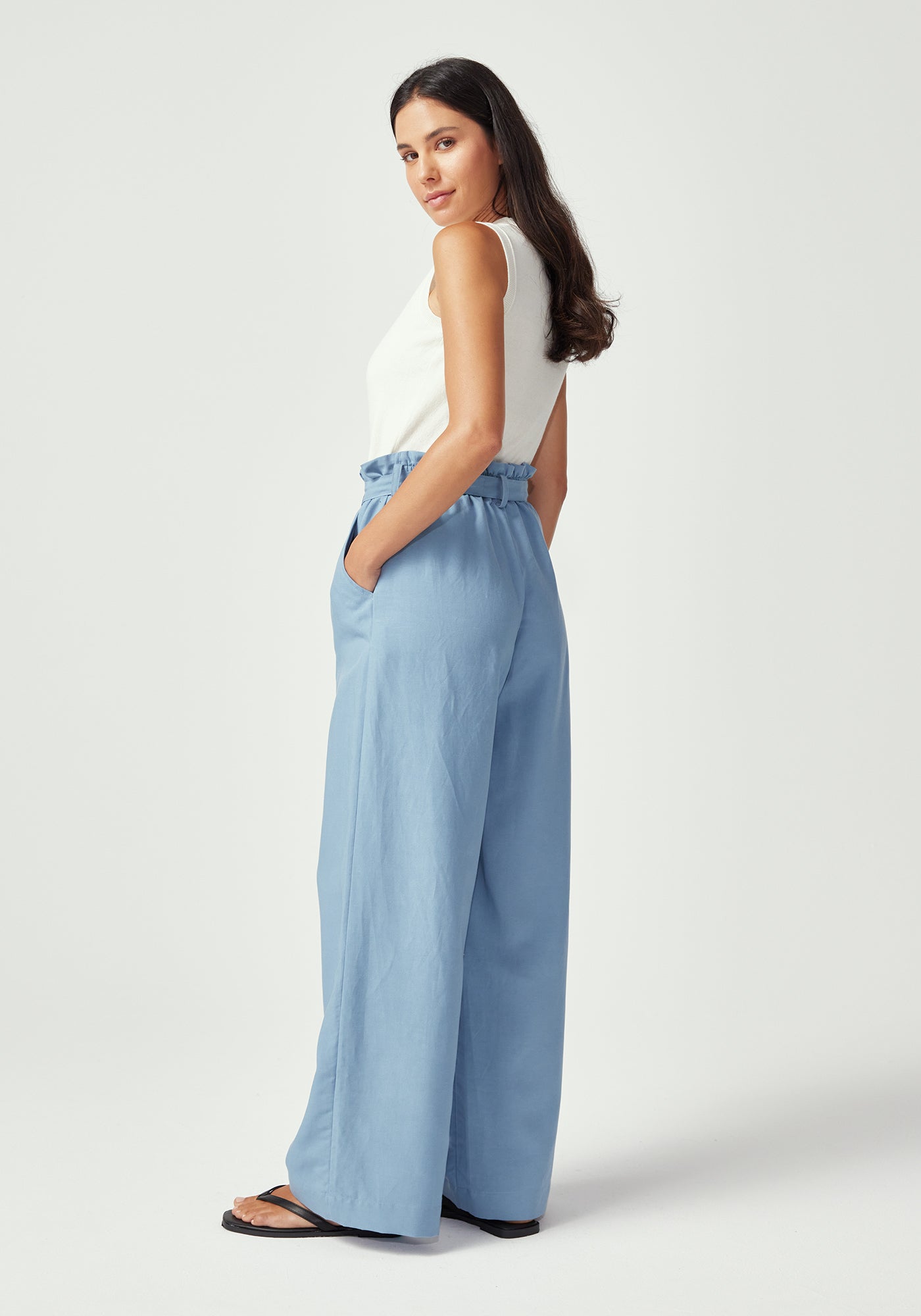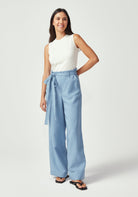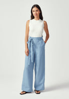 Meet your new favourite wide-leg trouser. Made from 73% TENCEL™ and 27% linen, they offer the luxurious feel of silk with the practical benefits of a performance fabric that breathes and moves with you. The tie-waist detail adds a feminine touch while allowing for a customized fit, and the flowing wide-leg silhouette creates an elegant line that's both comfortable and flattering. Whether styled with fitted tops or flowing blouses, these pants deliver effortless polish for any occasion.