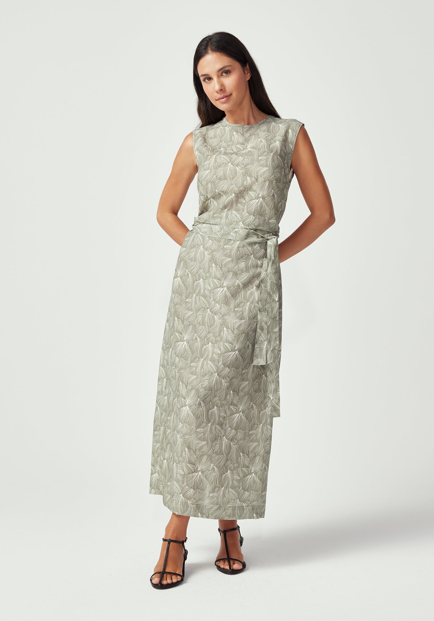 The Emeline Dress embodies relaxed sophistication with its sleeveless silhouette, adjustable side tie, and flowing midi length that moves beautifully with you throughout the day. The classic sleeveless cut offers versatility for layering or wearing solo, while the side tie detail creates flattering drape to accentuate your waist. Available in our Dew blue and our original print Organic Lines, this dress is set to become a go-to piece.