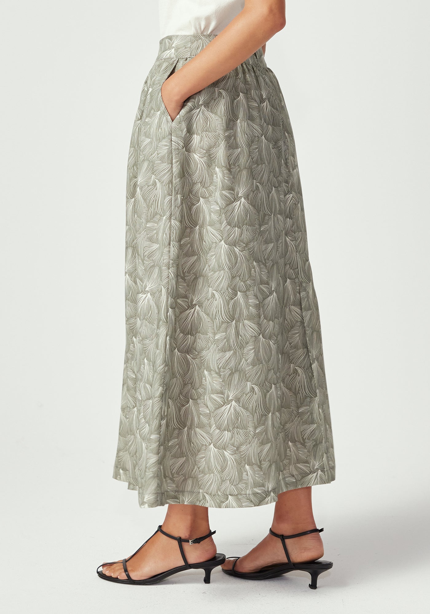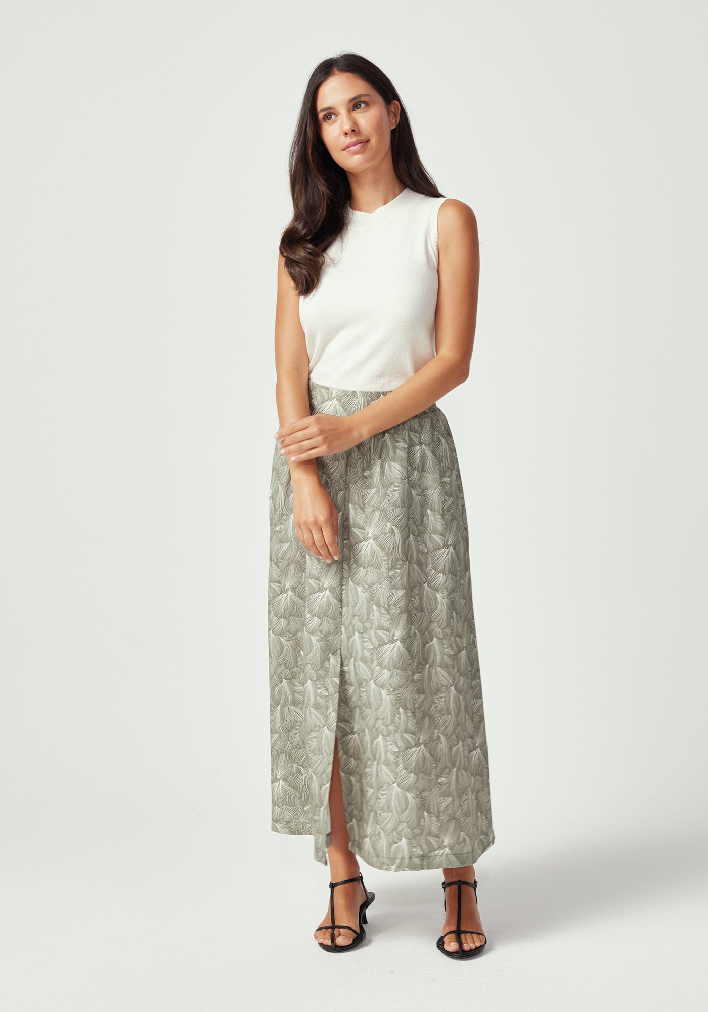 The Freydis Skirt combines a timeless midi silhouette with modern sustainability. Crafted from our signature blend of 73% TENCEL™ and 27% linen, it feels as good as it looks. The relaxed elastic waistband offers all-day comfort while the flowing A-line cut flatters every figure. Front and back splits add just the right amount of movement and visual interest, making this piece perfect for everything from weekend brunches to evening dinners.