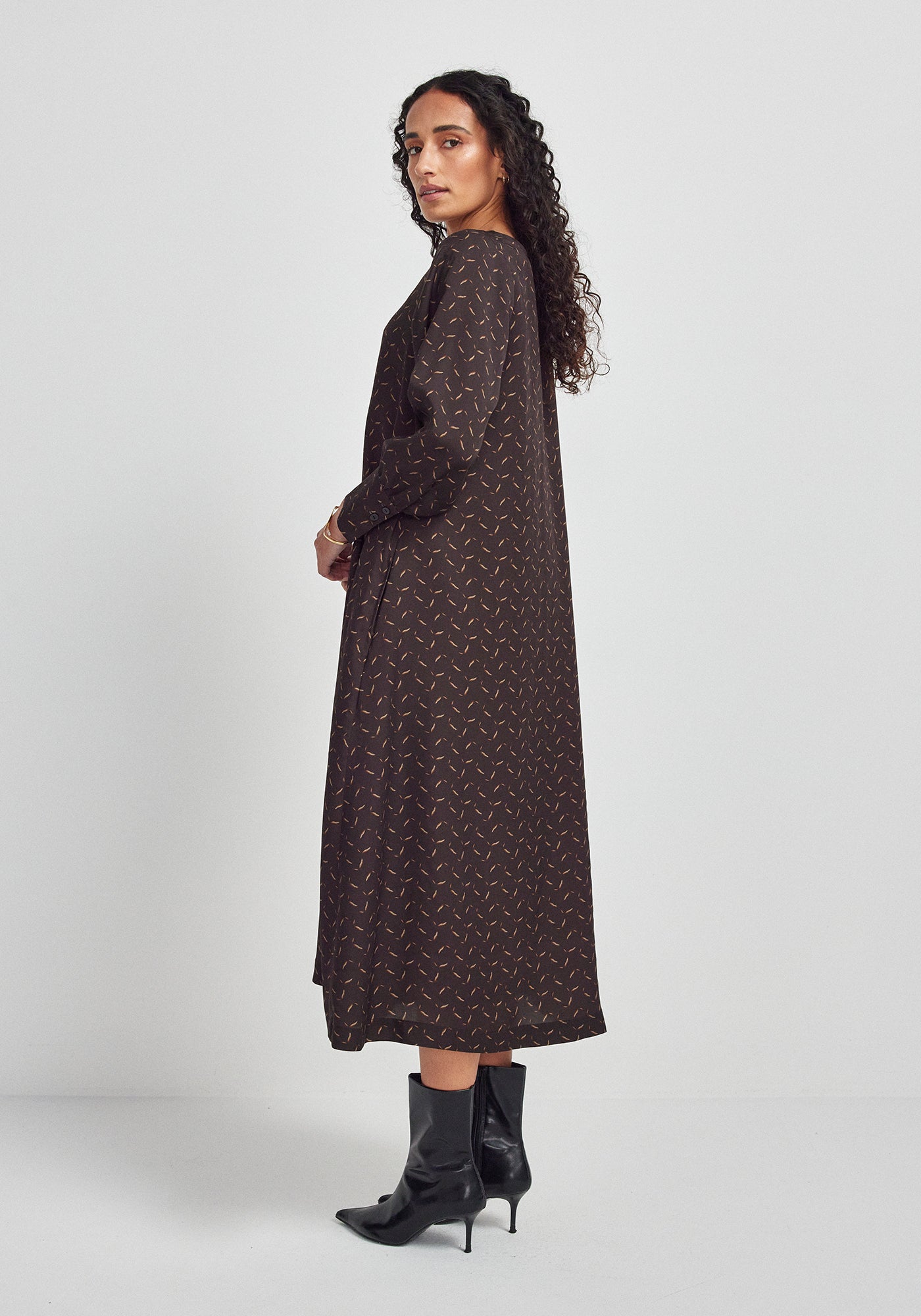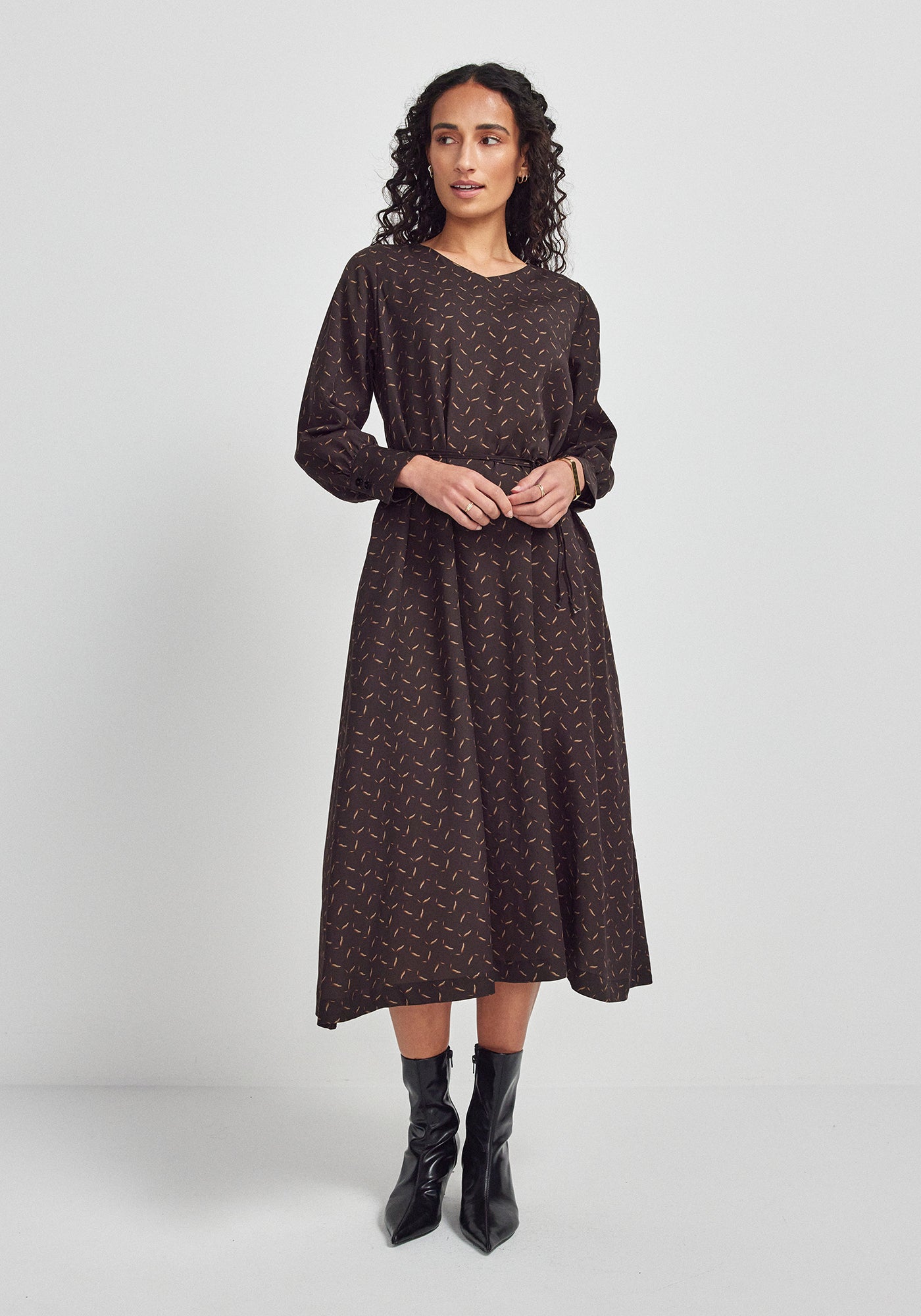 The epitome of autumnal elegance, the Juniper Dress is one you'll be able to rely on this season. Made with 100% TENCEL™, you can layer it up to your heart's content and still feel comfortable, thanks to the breathability of this natural fibre. Long sleeves and generous cuffs give it a tailored, chic feel. Soften the look by wearing it loose and flowing, or add the waist tie for an evening out, either way you'll be turning heads when the temperatures drop.
