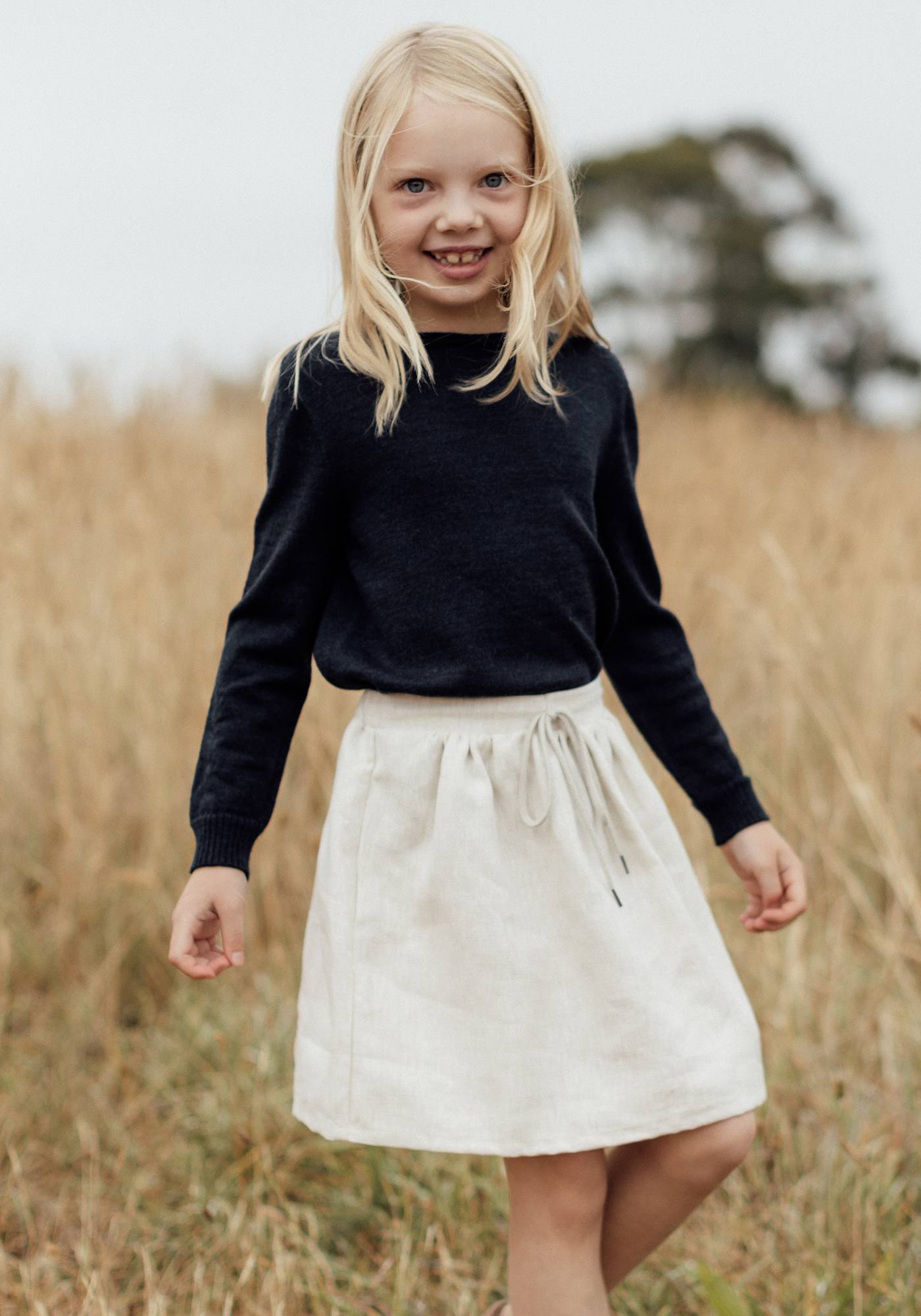 Timeless and ageless, this premium quality crew can be handed down for generations. The natural powers of merino give this knit amazing temperature regulating properties and breathability to keep your little one comfortable in any weather.