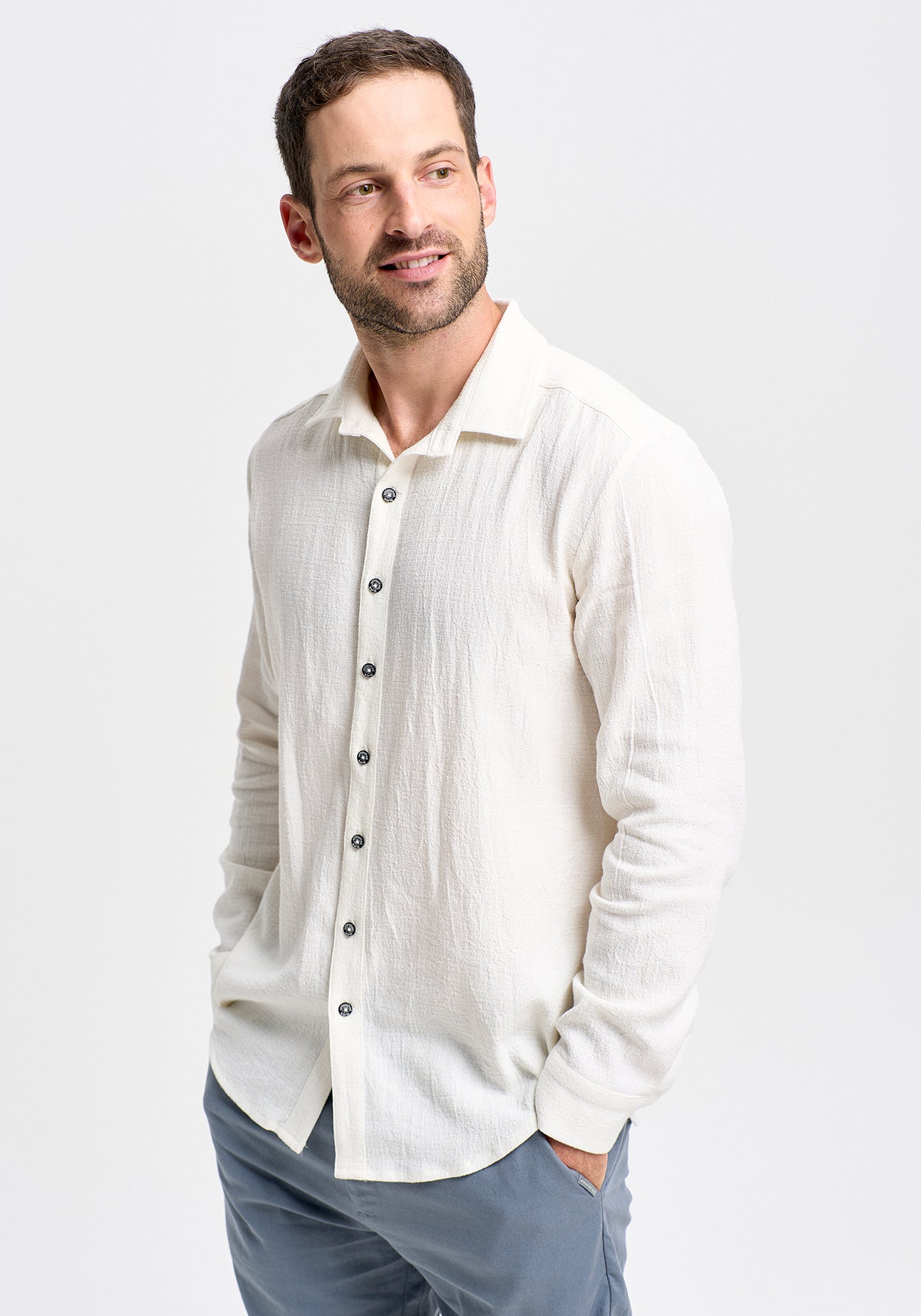 Looking for a shirt with laidback summer vibes? Then try Otis on for size. Our sea salt colourway has a relaxed fit and textured finish. A stylish shirt that will take you places.