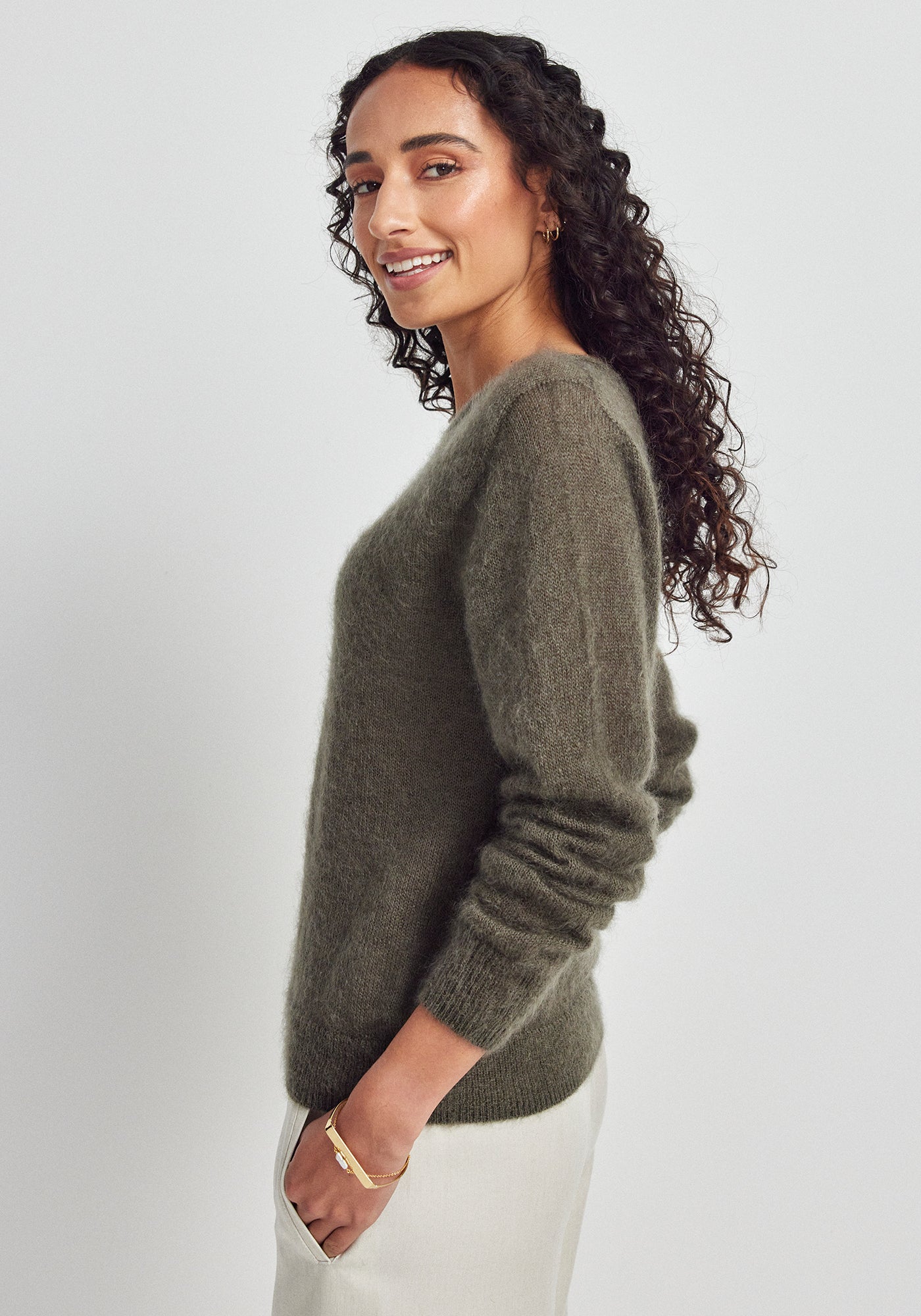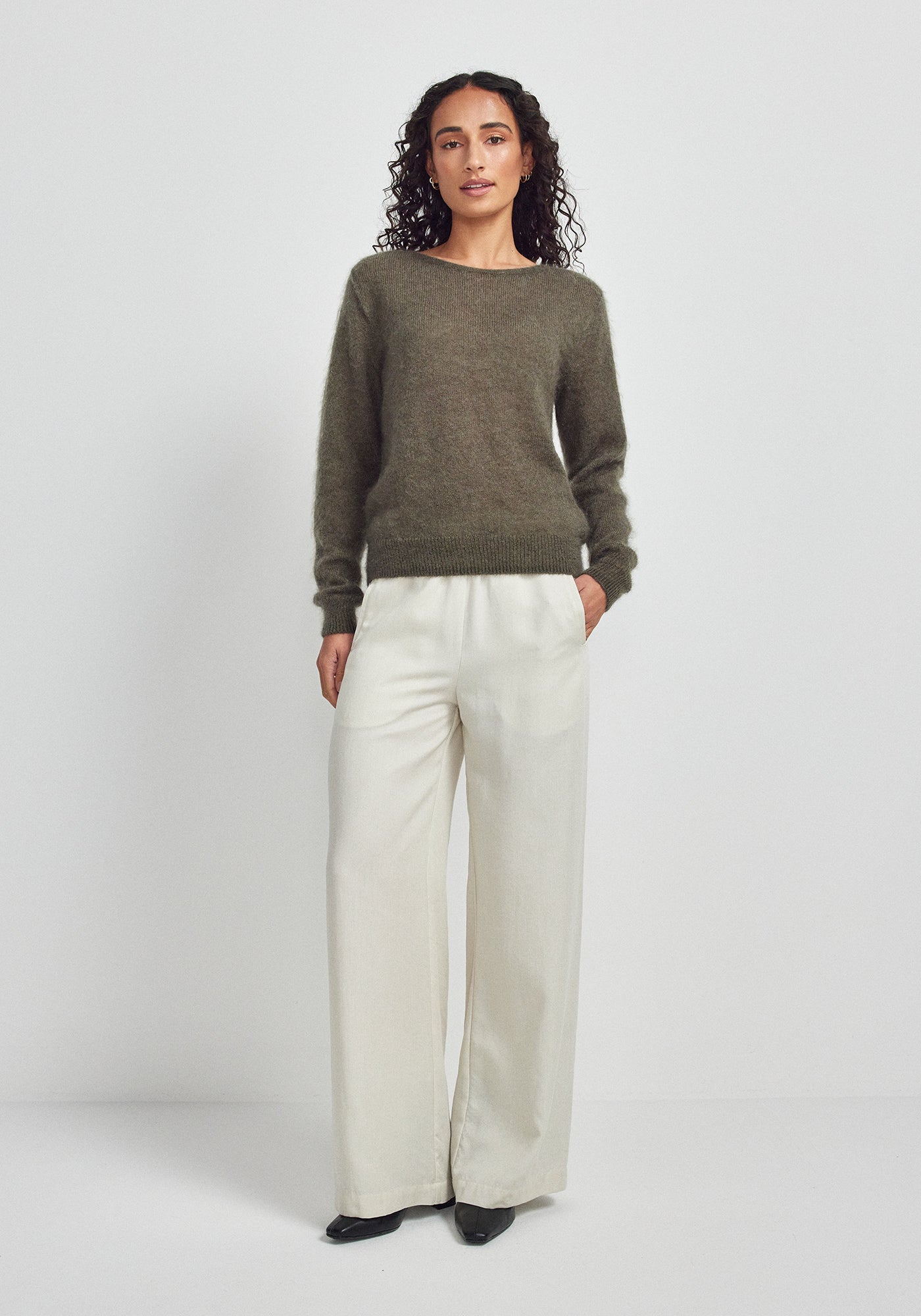 Indulge in luxurious comfort with this exquisitely crafted sweater made from a sumptuous blend of 70% Super Kid Mohair and 30% silk. The crew neck design offers an incredibly soft, cloud-like feel with a subtle lustrous finish. Perfect for both casual occasions and elevated everyday wear.