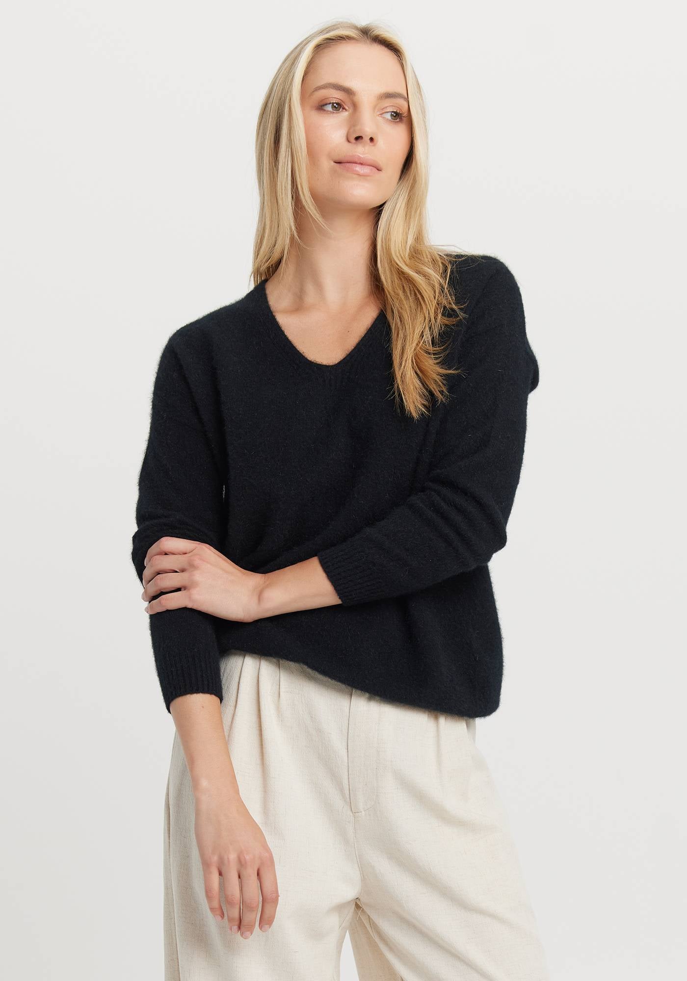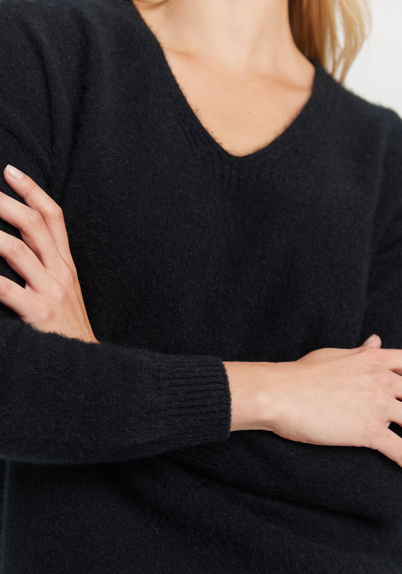 You know that wardrobe favourite you'd just wear on repeat every day if you could...well you've found it. Cover yourself in our cosy Kapua™ and experience its featherweight warmth. This beautiful v neck is soft enough to wear against even the most sensitive skin. Relaxed in silhouette, it will dress up or down, to take you from the sofa to downtown.
