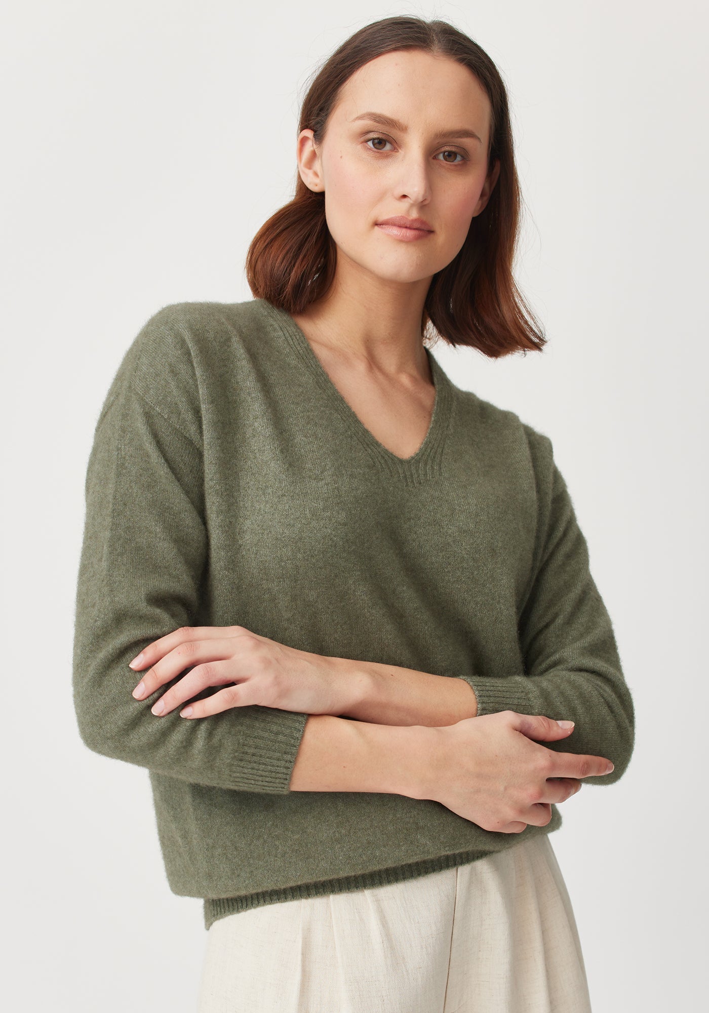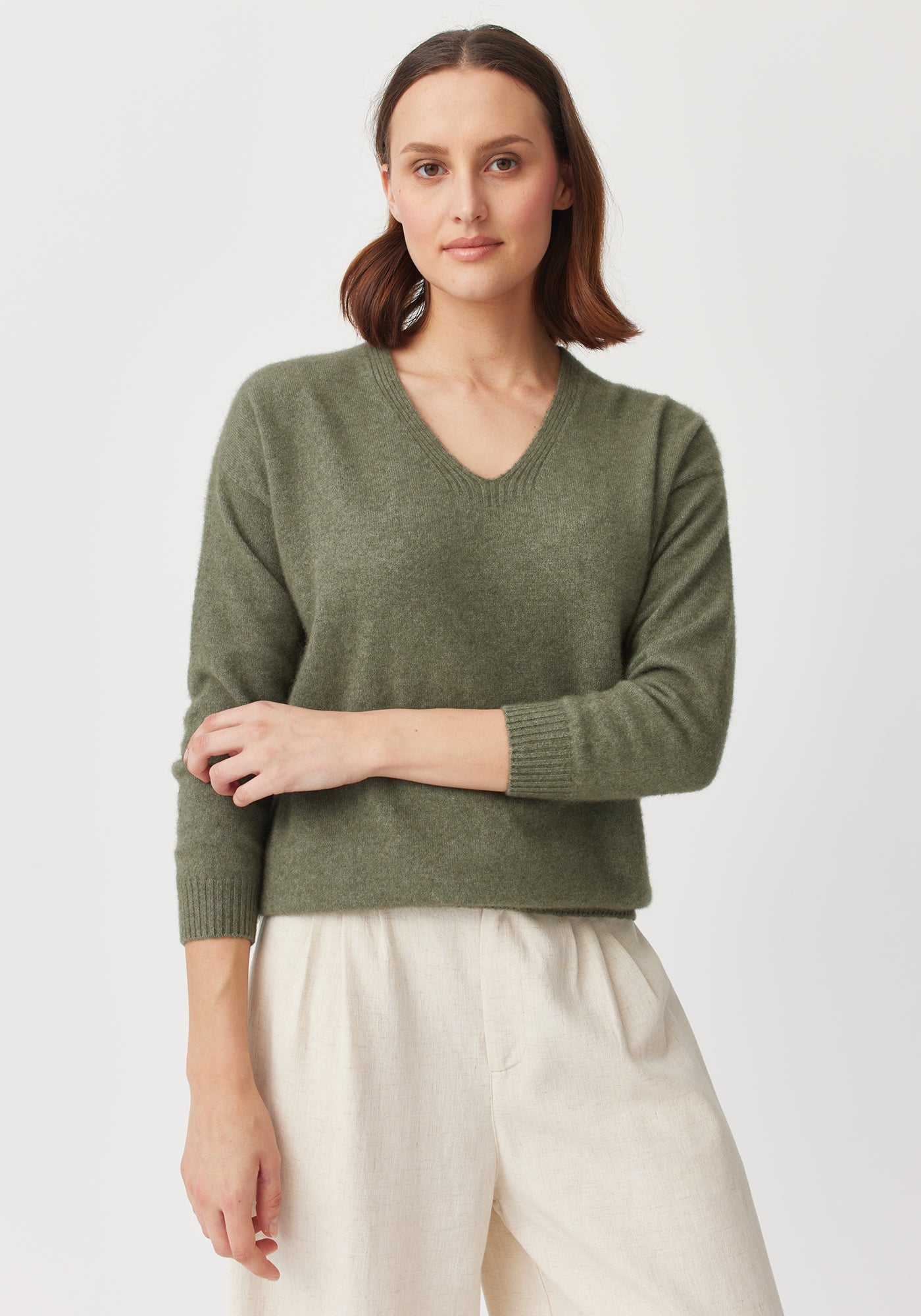 You know that wardrobe favourite you'd just wear on repeat every day if you could...well you've found it. Cover yourself in our cosy Kapua™ and experience its featherweight warmth. This beautiful v neck is soft enough to wear against even the most sensitive skin. Relaxed in silhouette, it will dress up or down, to take you from the sofa to downtown.