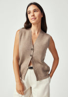 This flattering v-neck vest brings effortless sophistication to any outfit, whether you're layering it over a crisp shirt for the office or wearing it solo with your favourite jeans. Two recycled paper buttons add a subtle tailored detail that elevates the look. Crafted from 100% premium machine washable merino wool, the Indigo Vest naturally regulates your temperature, keeping you comfortable whether you're rushing between meetings or relaxing with a coffee.