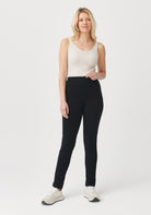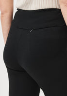 Peace out to all the uncomfortable pants. The Peace Pant has arrived! The comfy wide waistband and slim, stretchy silhouette translates to wearable relaxation, whether you're at your 9 to 5, navigating school pick up, or simply lounging around at home. An invisible zip pocket on the back waistband gives you a secure and hidden spot to keep your keys or any little valuables safely stashed while you're on the go.