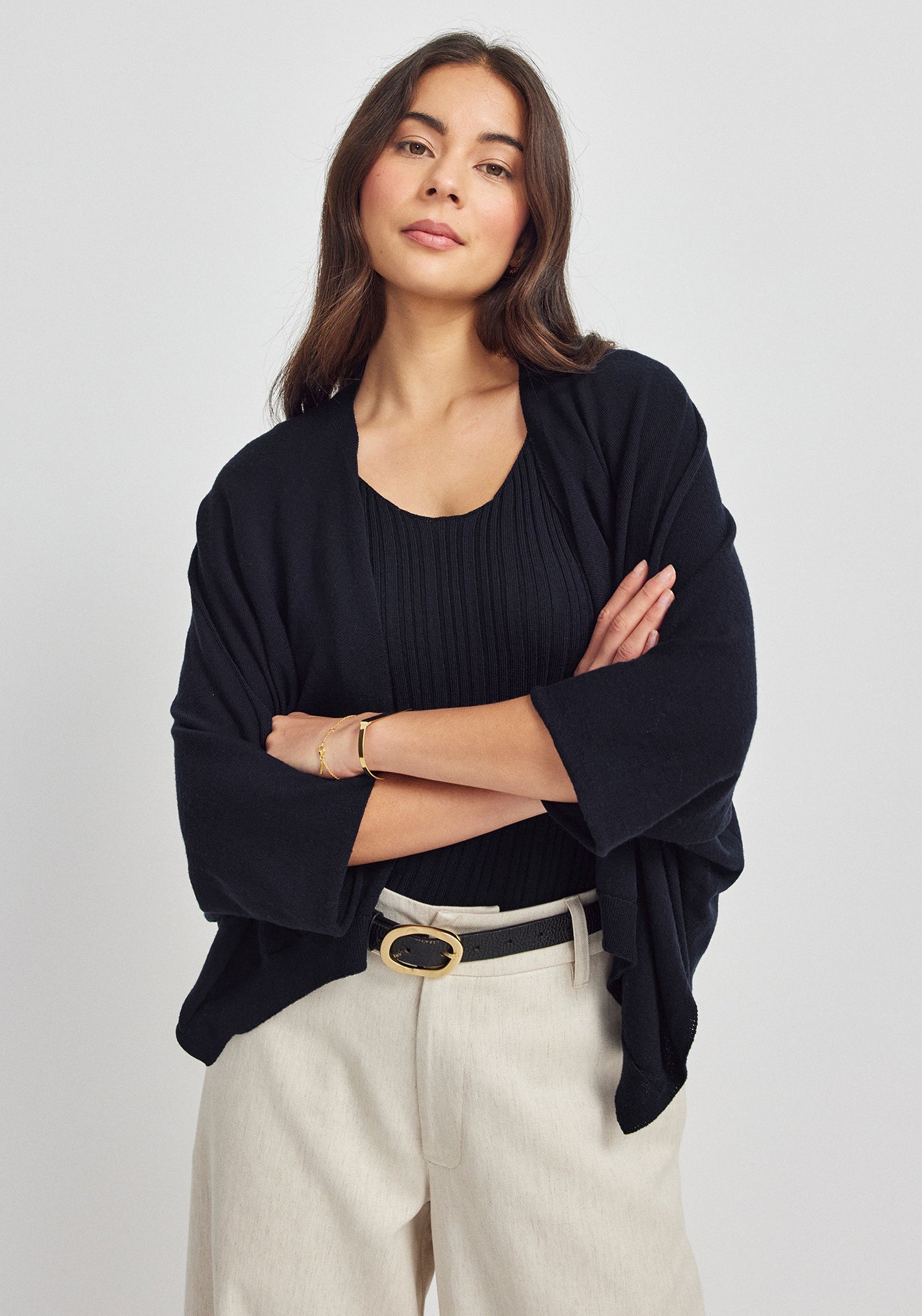 Long live the Queen (Bee). There’s reason why this best-seller is fashion royalty in our eyes. Loved for her versatility and multi-tasking abilities, this cardi can be worn cropped or reverse for a longer length. Wear open, wrapped or tied, the options are endless. Made from our premium quality Total Easy Care Merino, she’ll reign supreme in your closet for years to come.